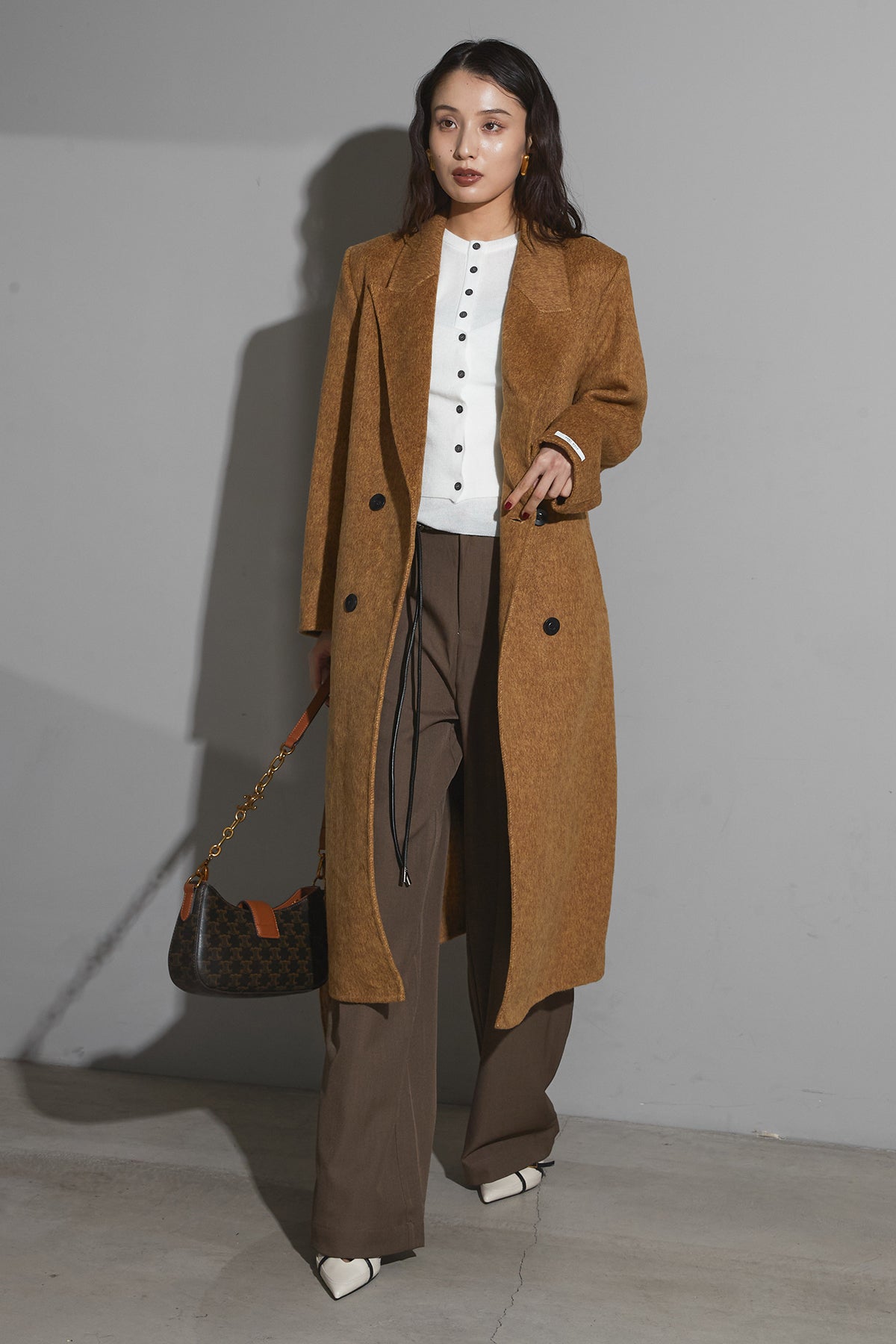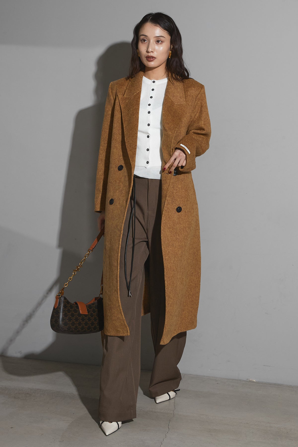 【SET】ウールマスタードチェスターコート+アメスリレイヤーニット+スラックス