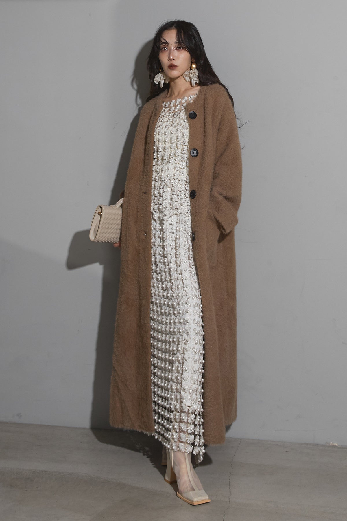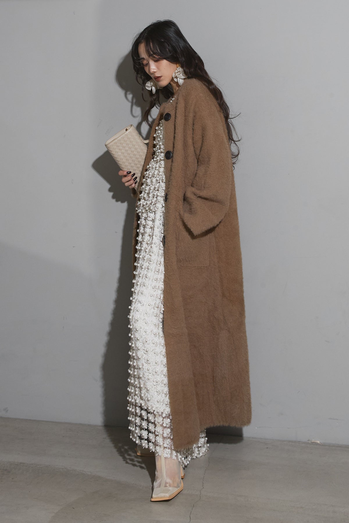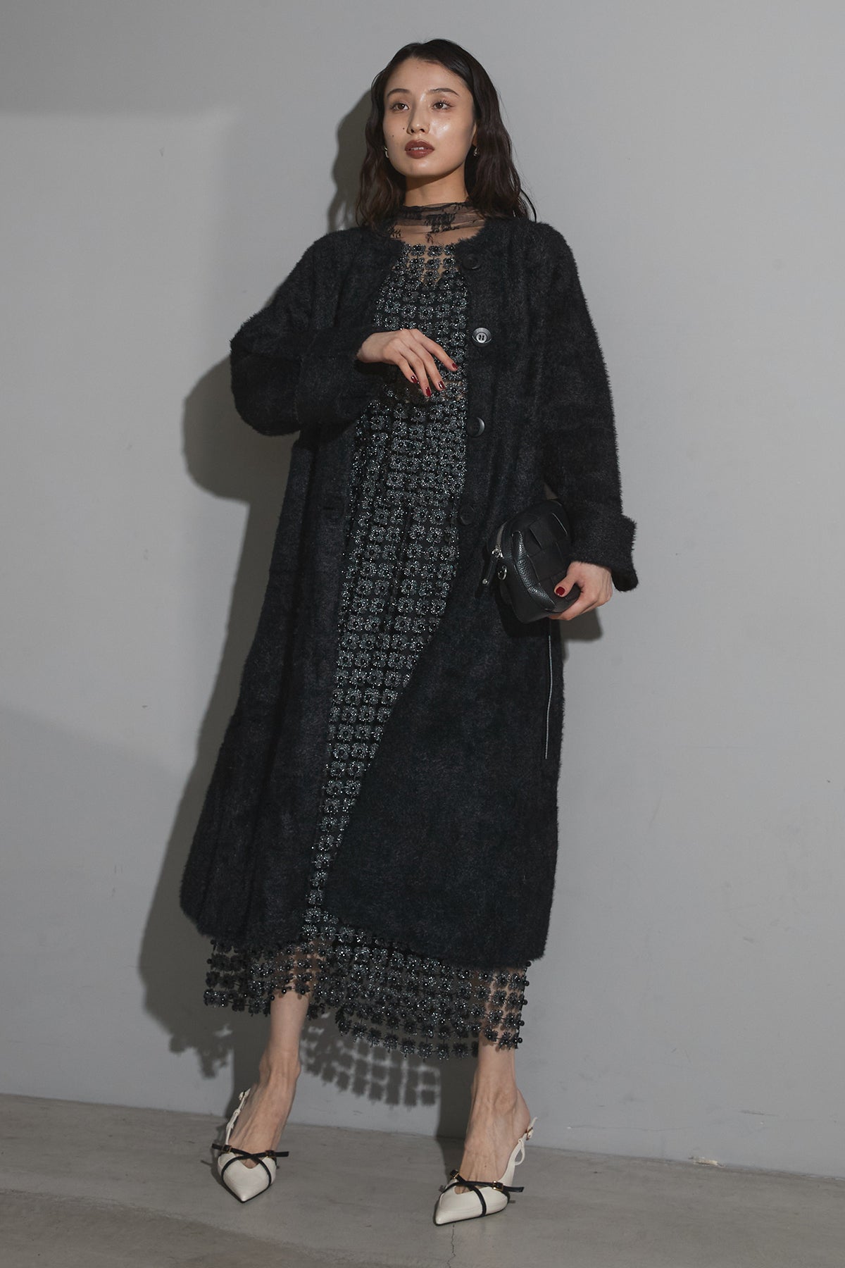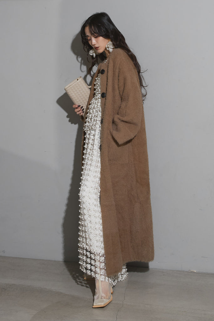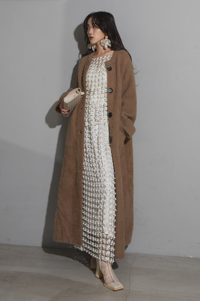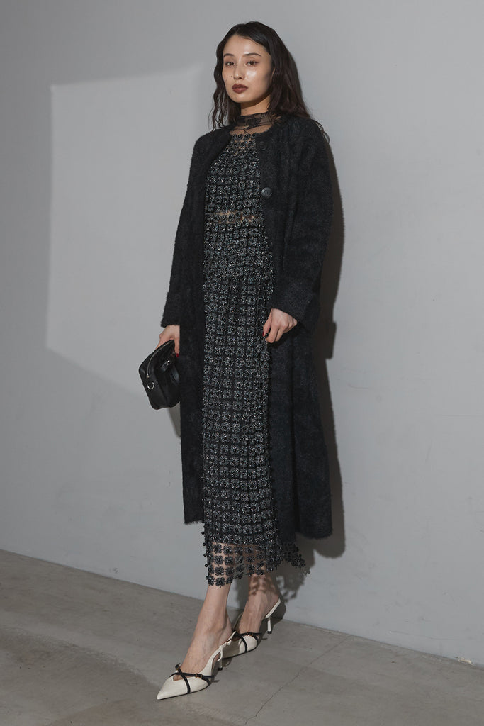 【SET】フラワーパールメッシュセットアップ+ボタンニットロングコート