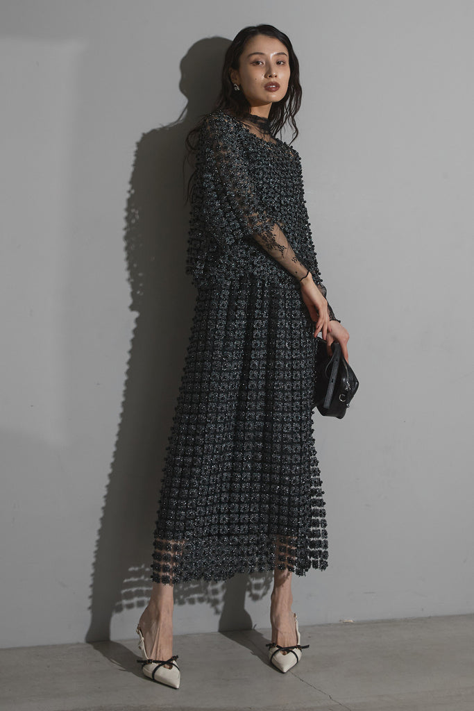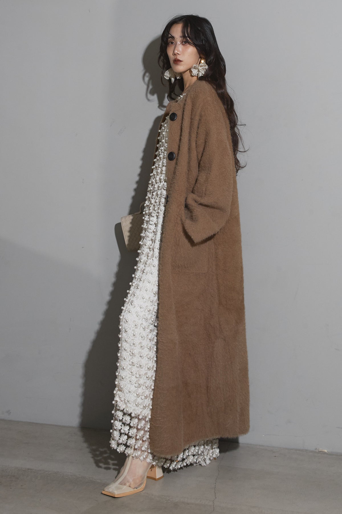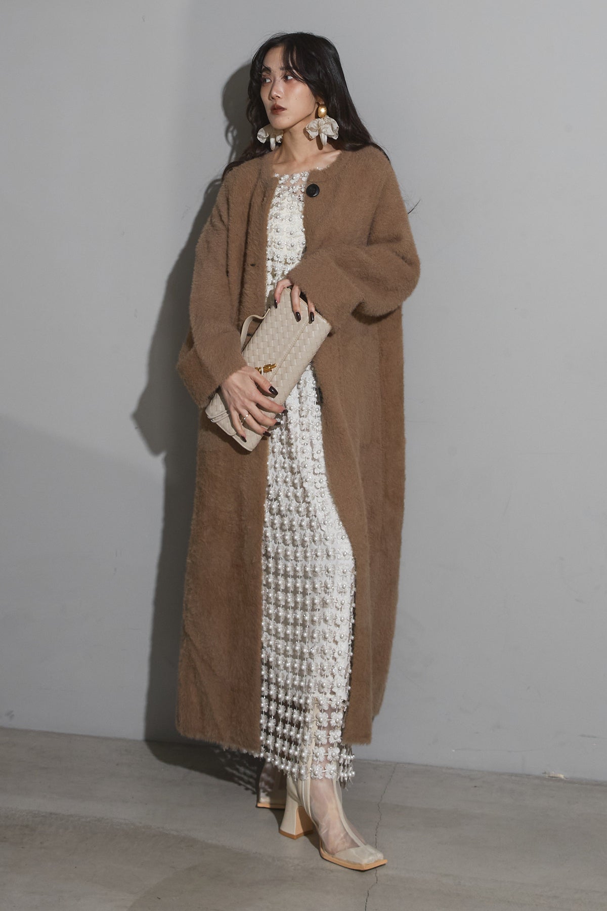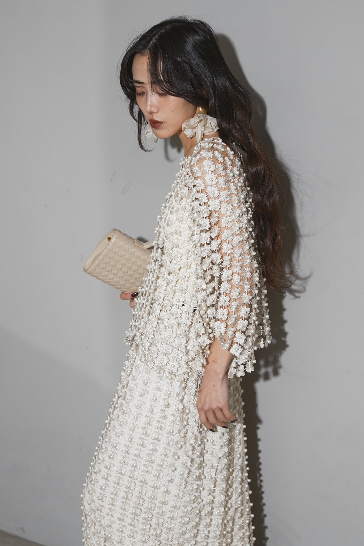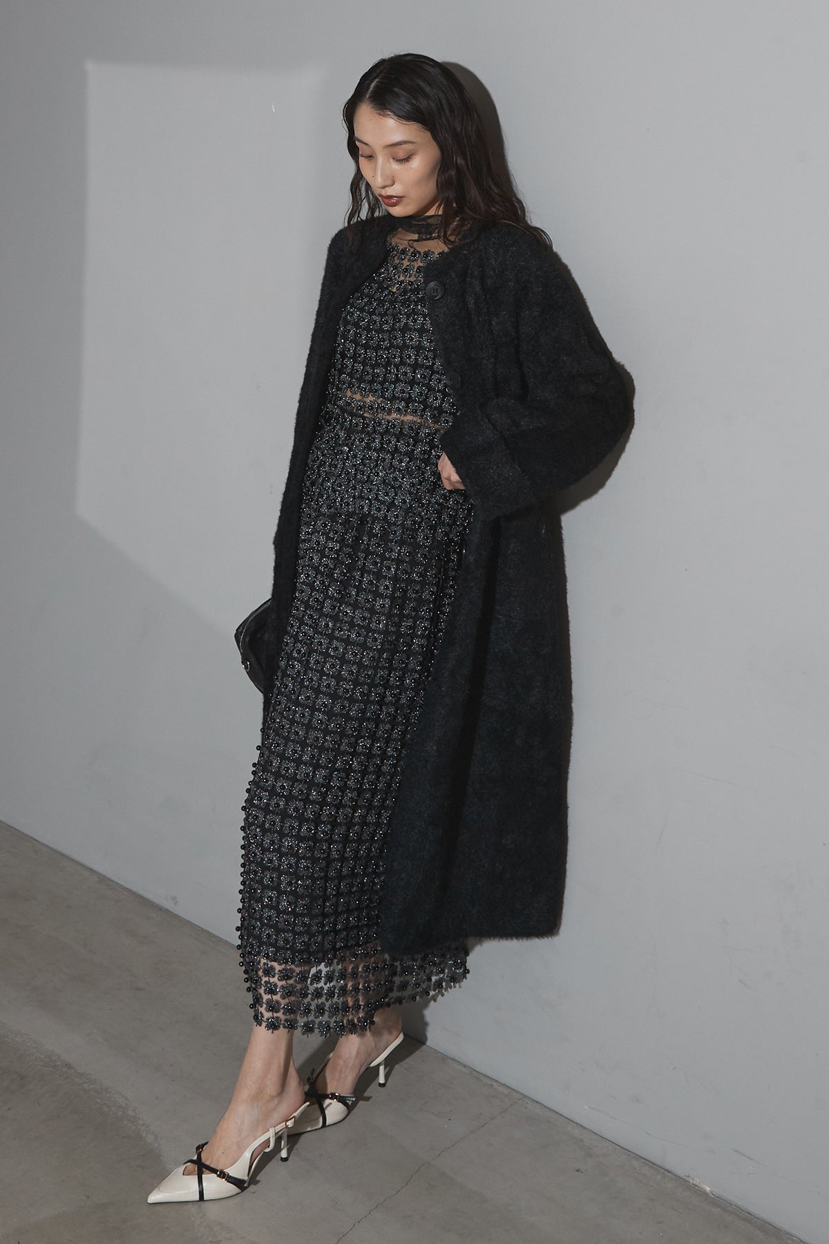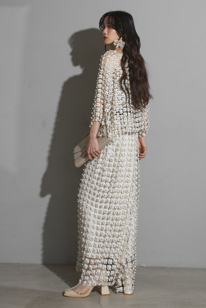 【SET】フラワーパールメッシュセットアップ+ボタンニットロングコート