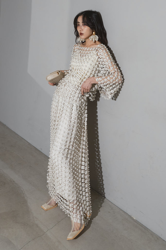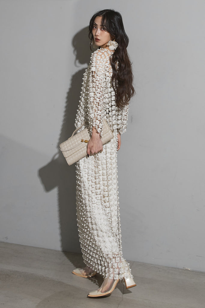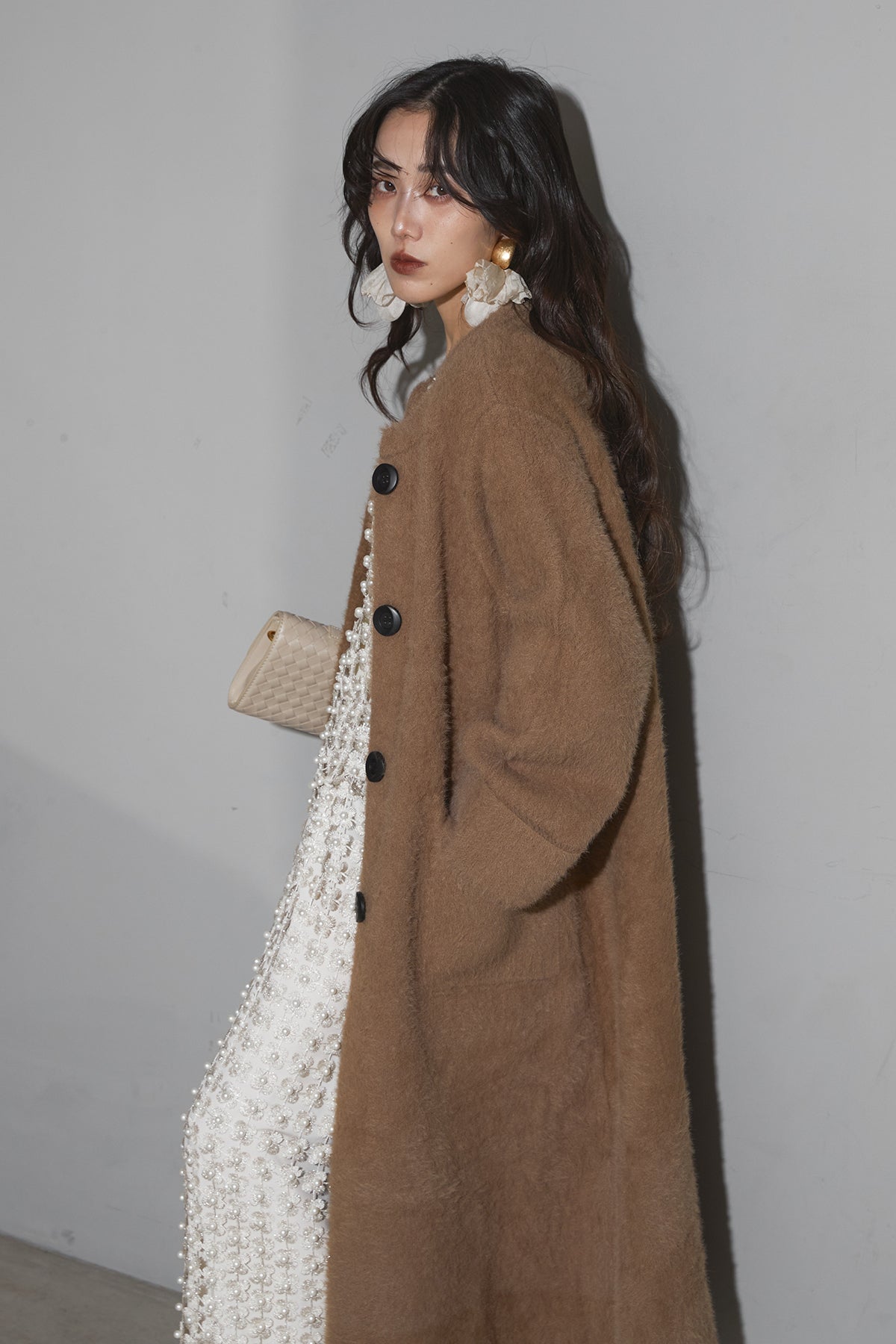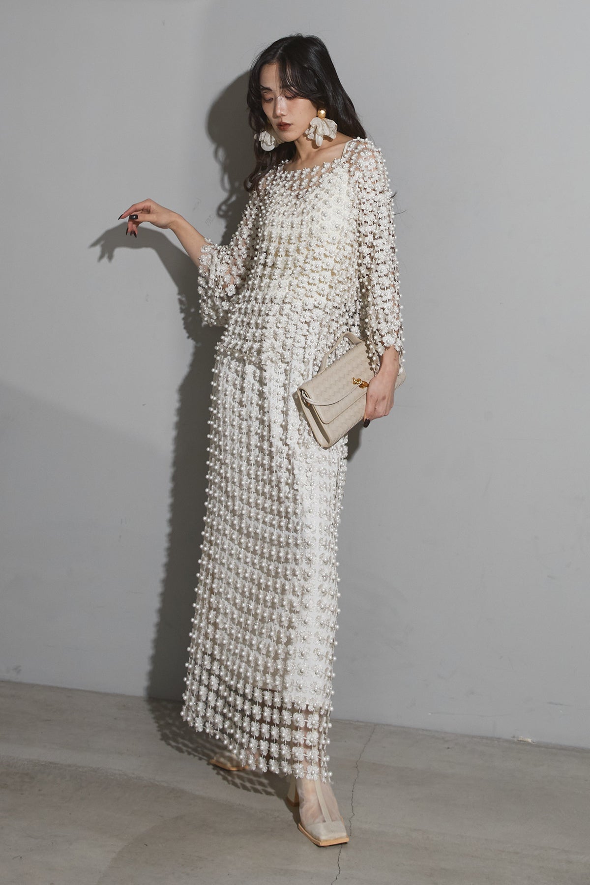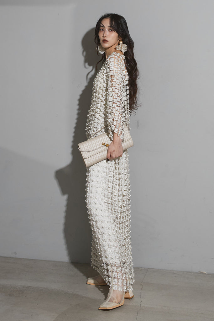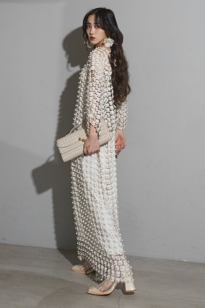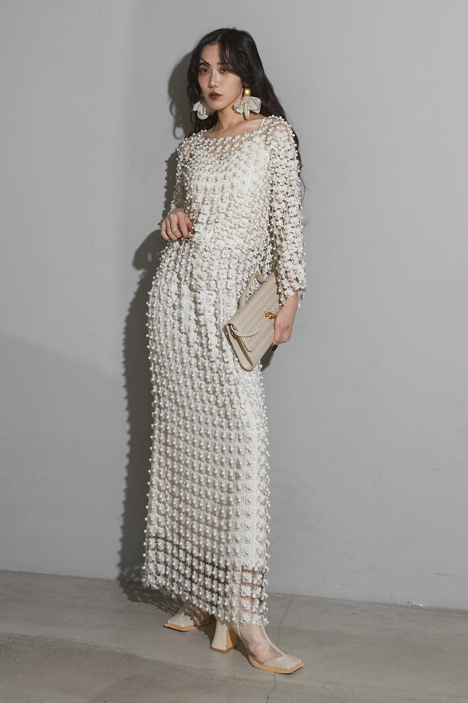 【SET】フラワーパールメッシュセットアップ+ボタンニットロングコート
