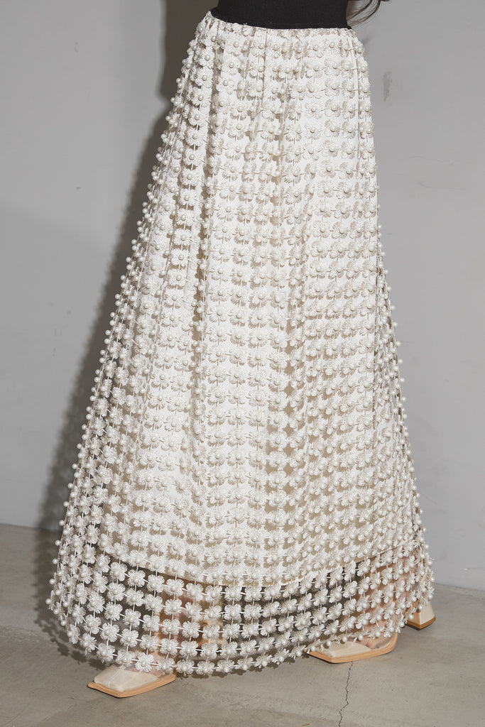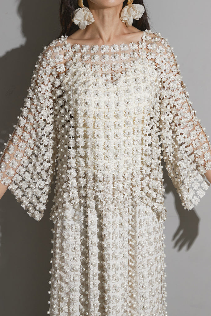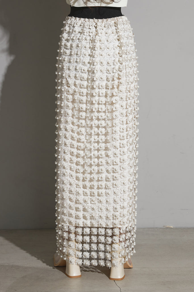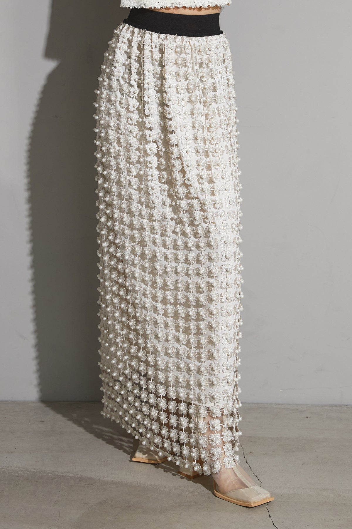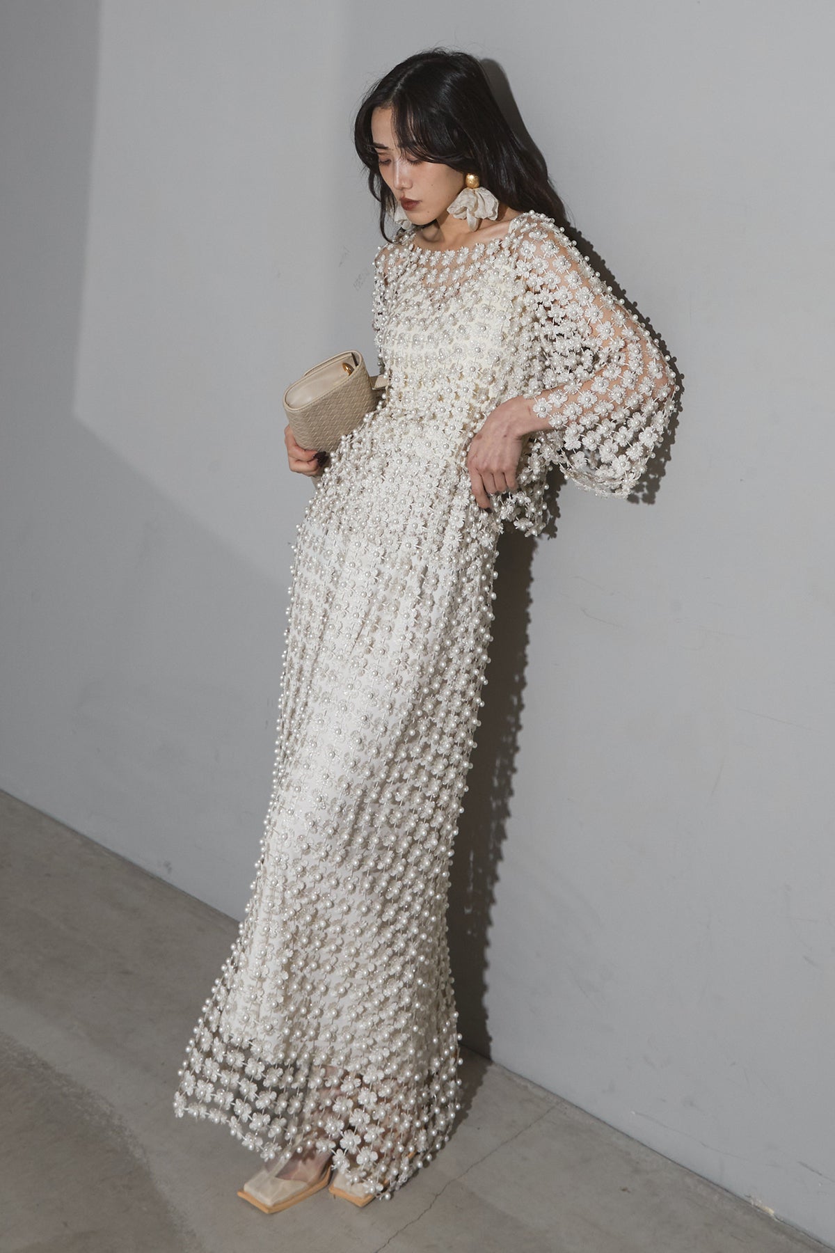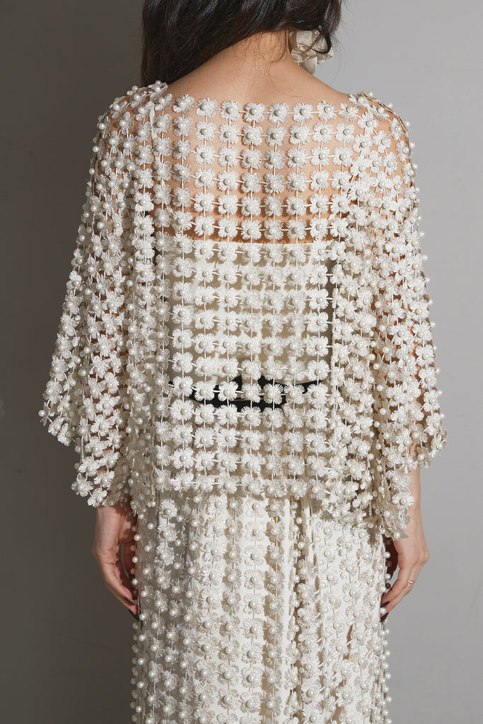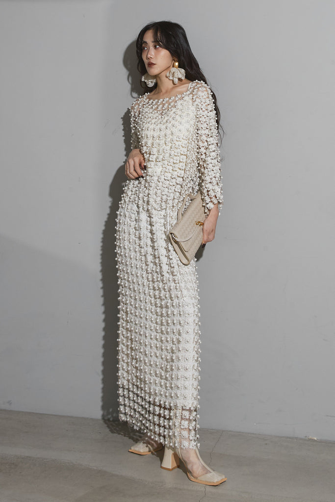 【SET】フラワーパールメッシュセットアップ+ボタンニットロングコート