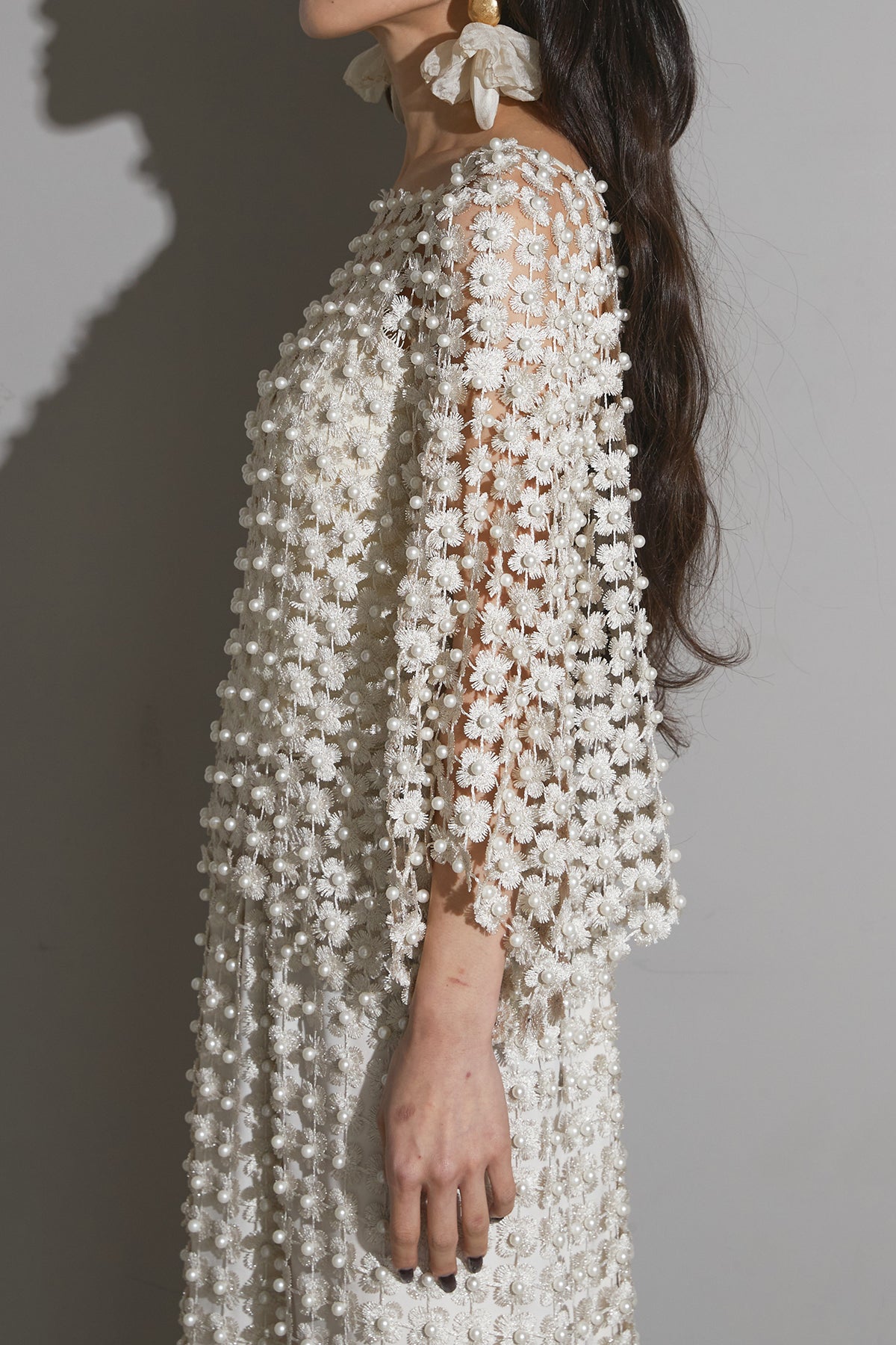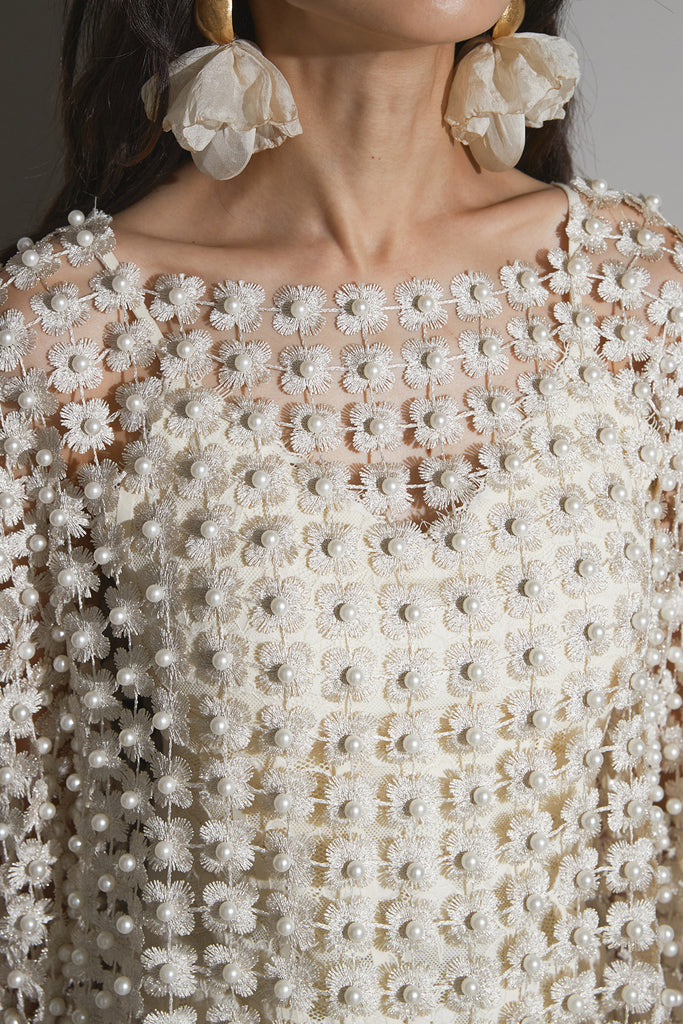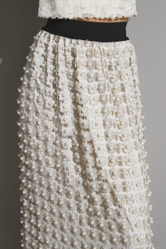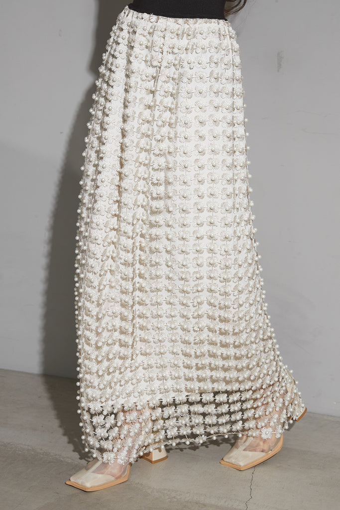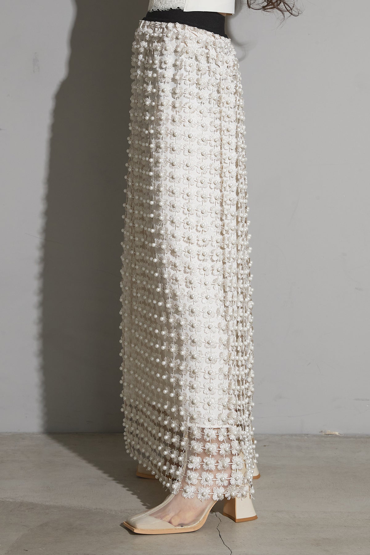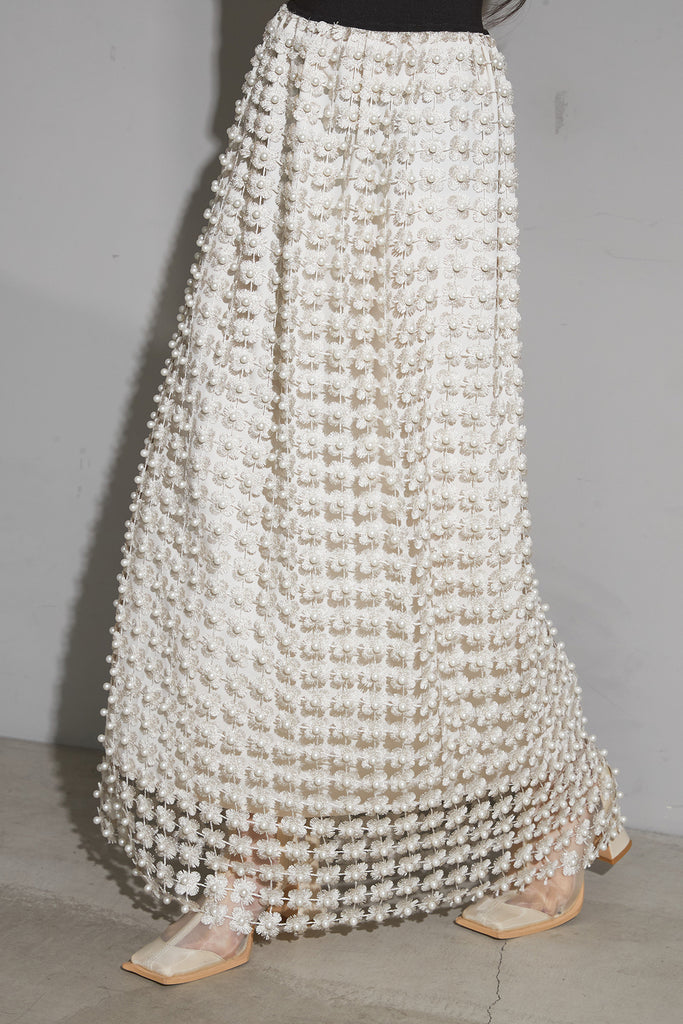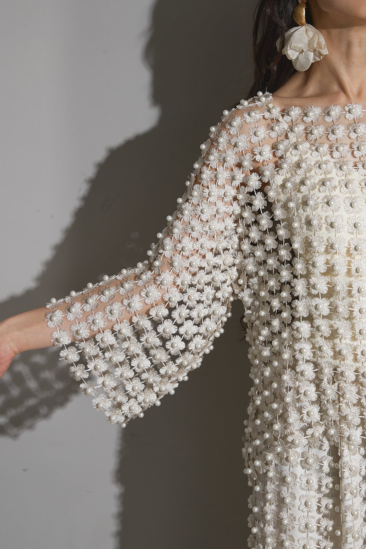 【SET】フラワーパールメッシュセットアップ+ボタンニットロングコート