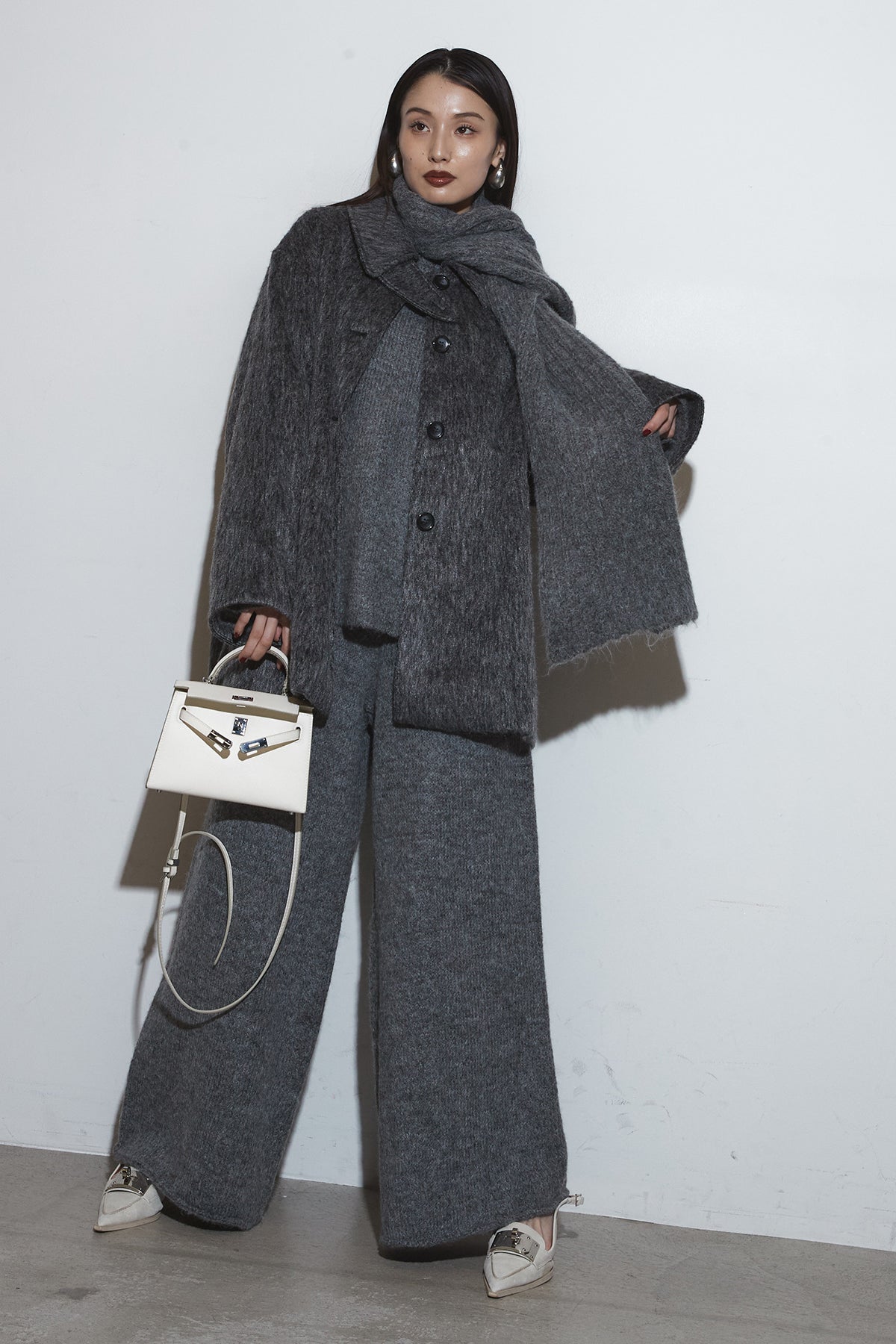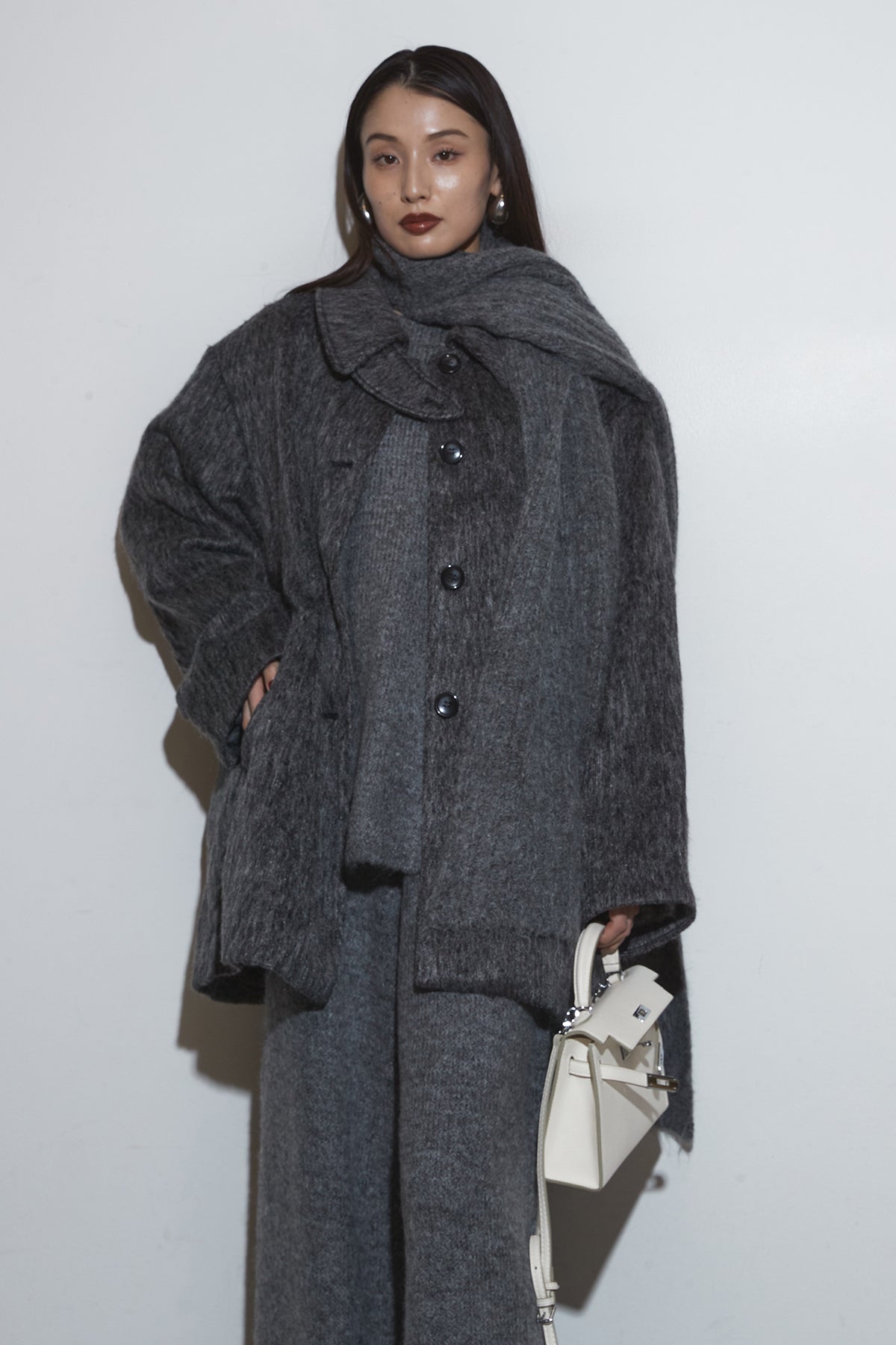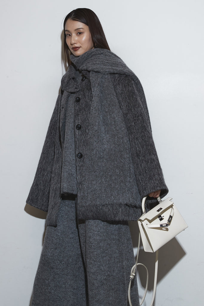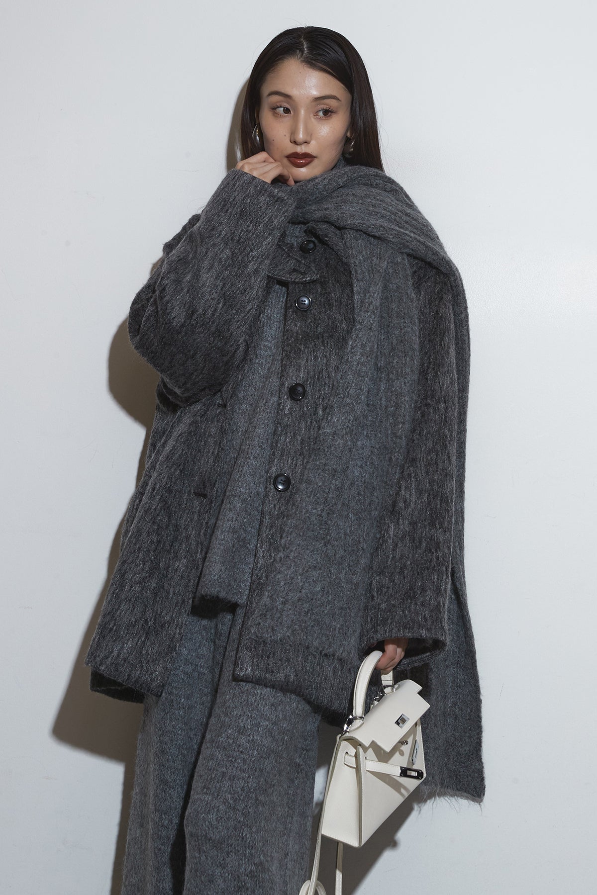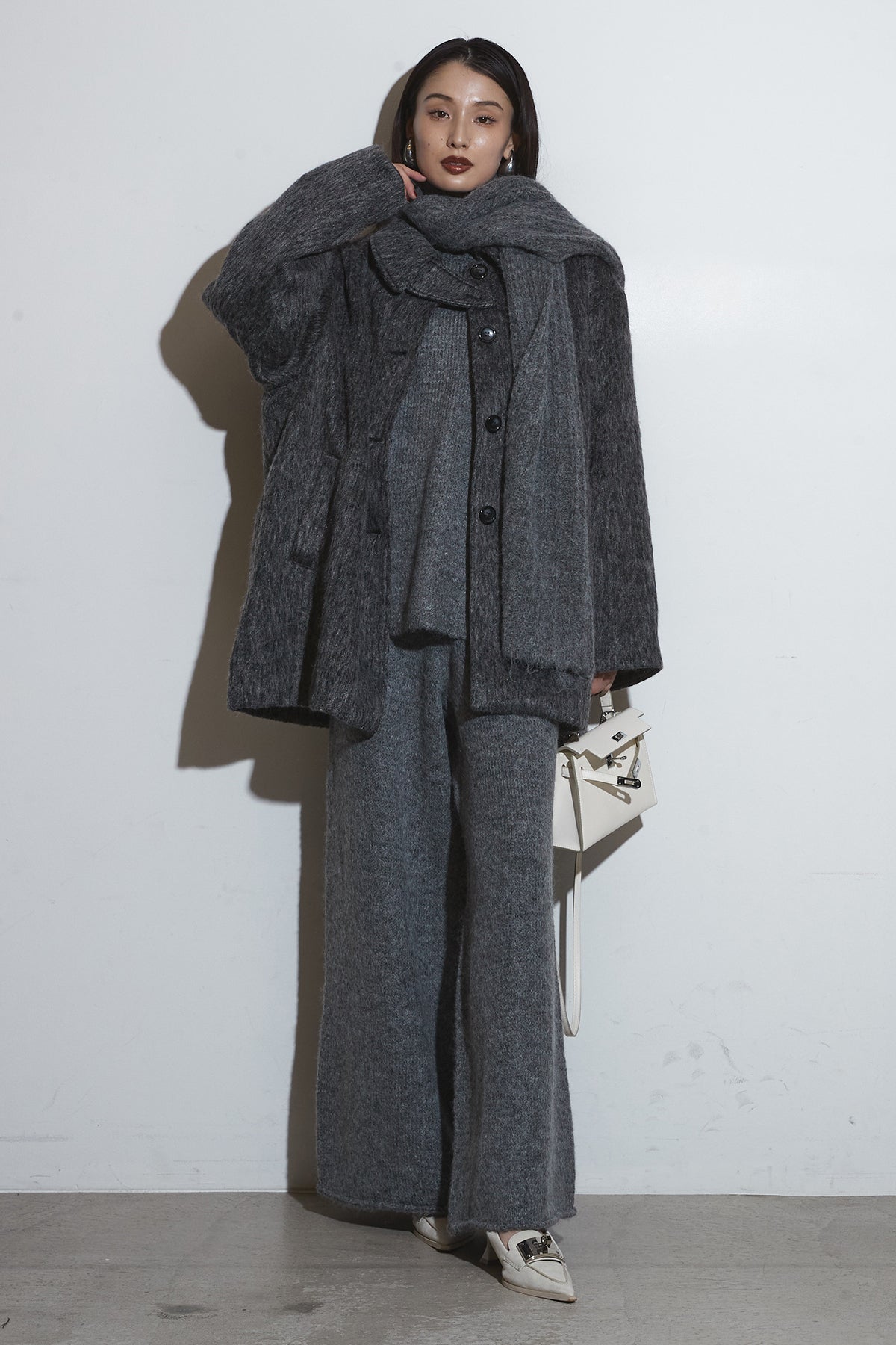 【SET】モヘアライクコート+オーバーサイズニットセットアップ