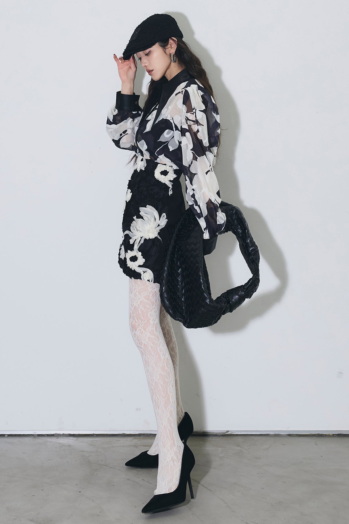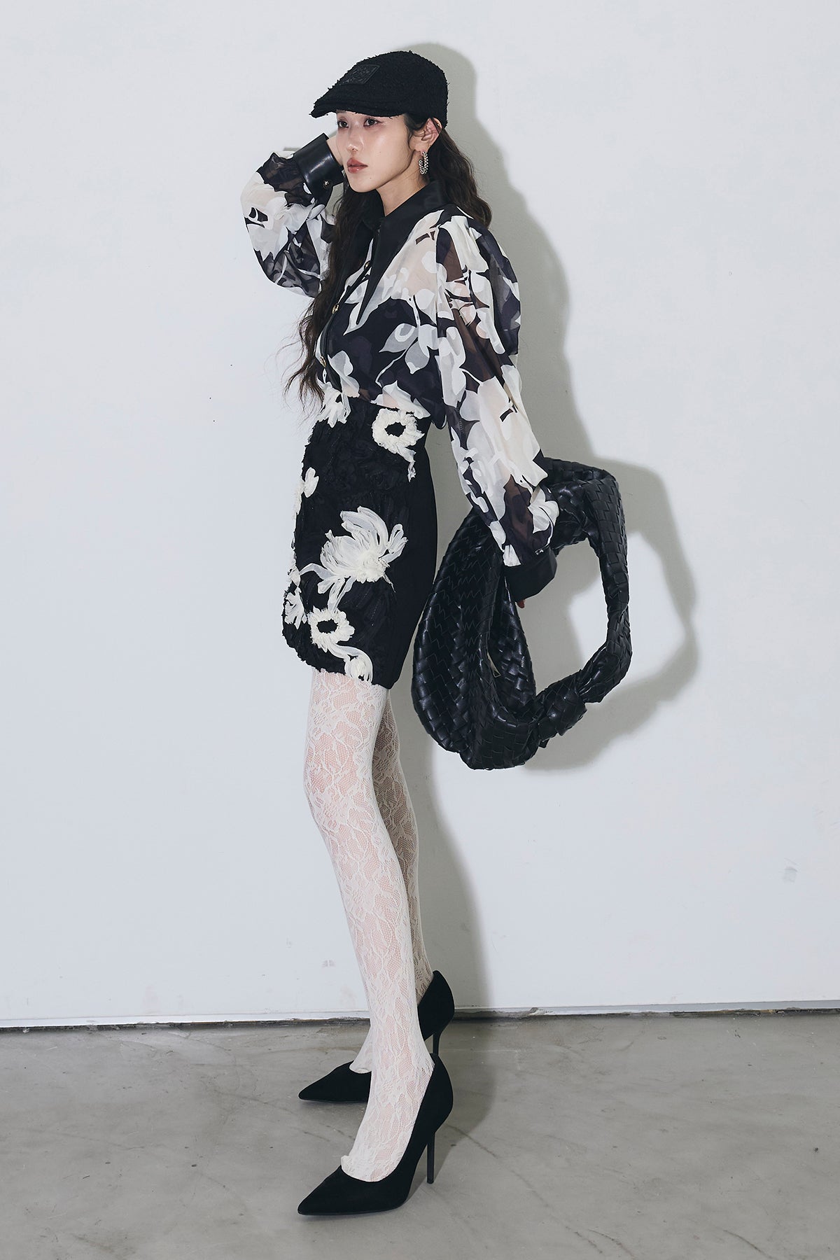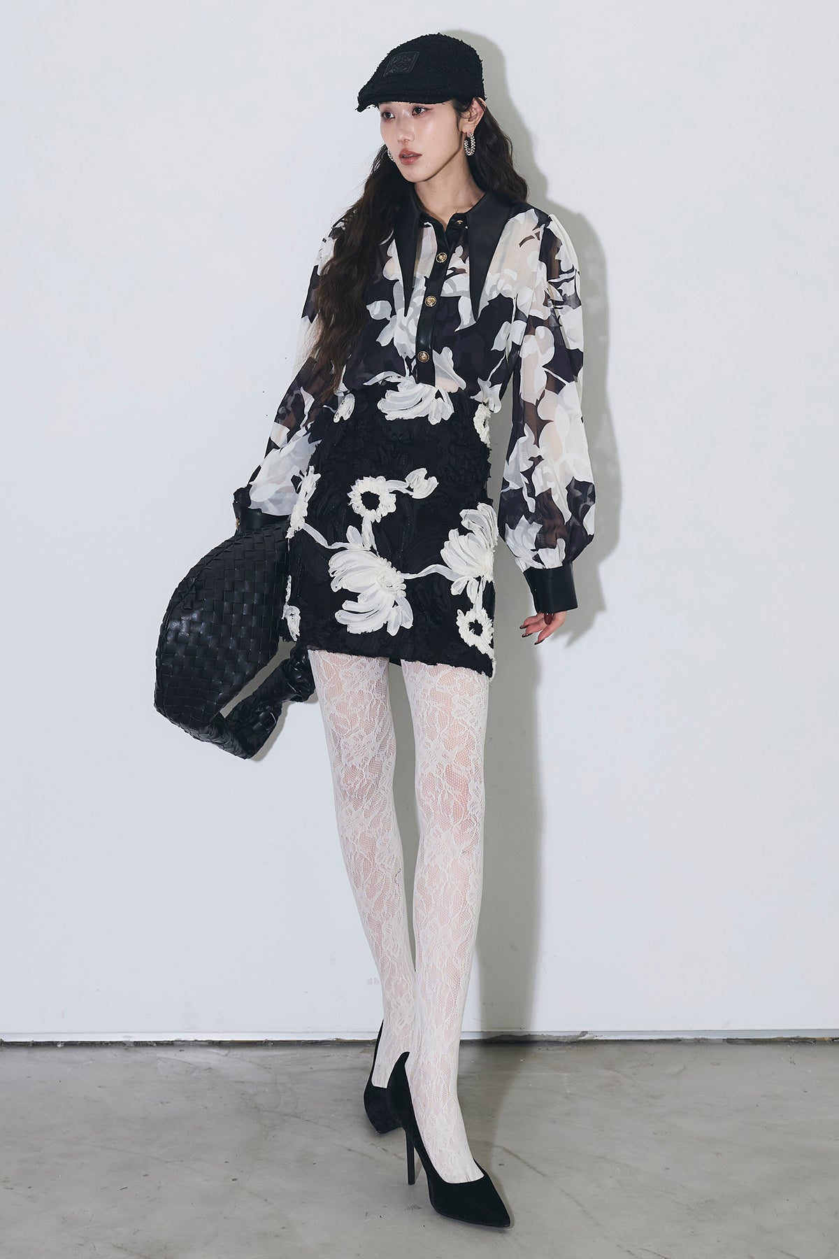 【SET】バイカラーボタニカルシャツ+バイカラーテープジャガードミニ