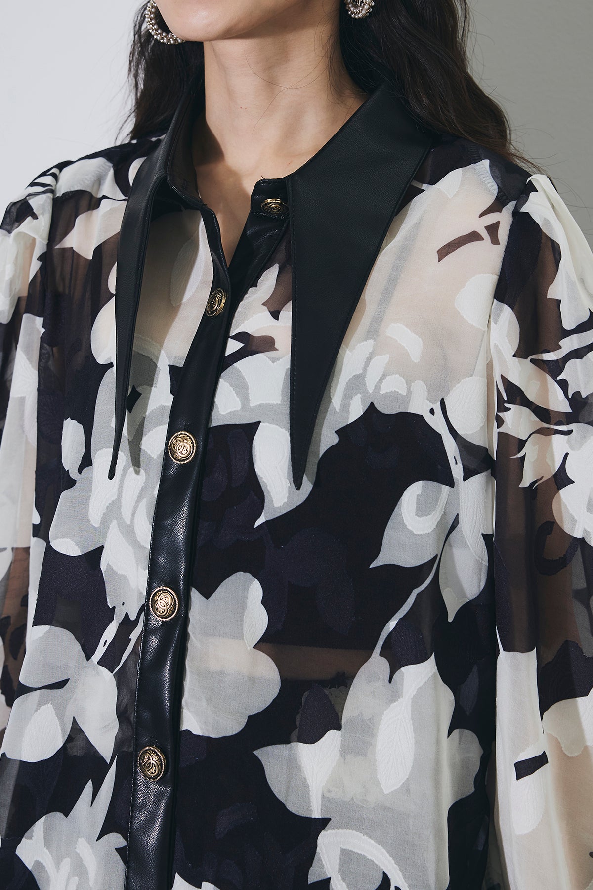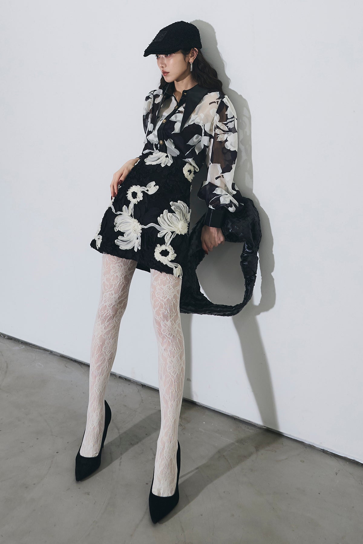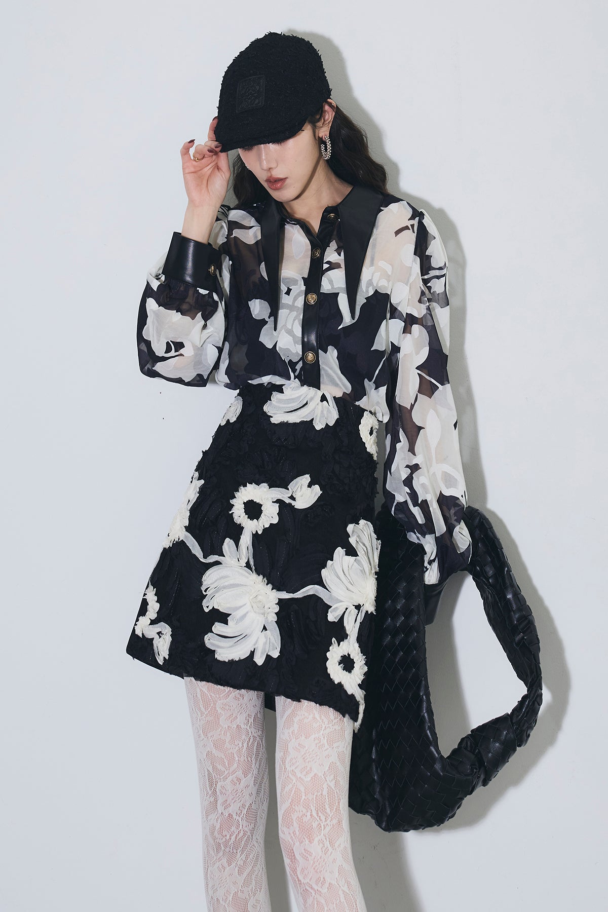 【SET】バイカラーボタニカルシャツ+バイカラーテープジャガードミニ