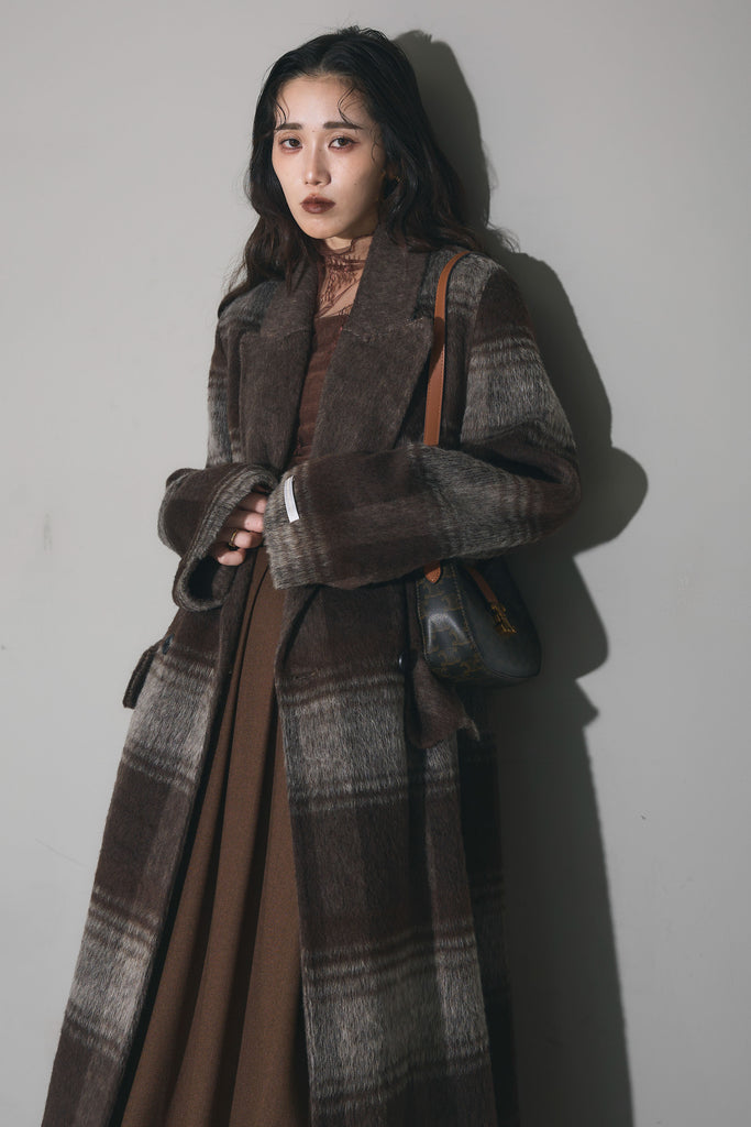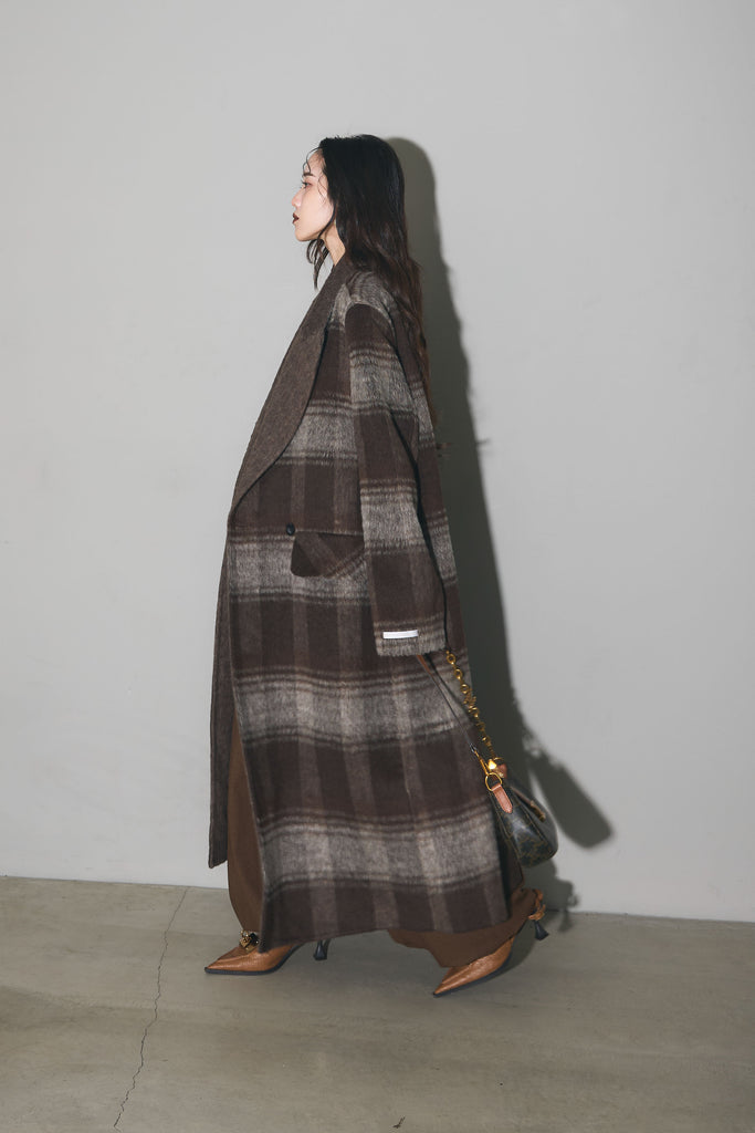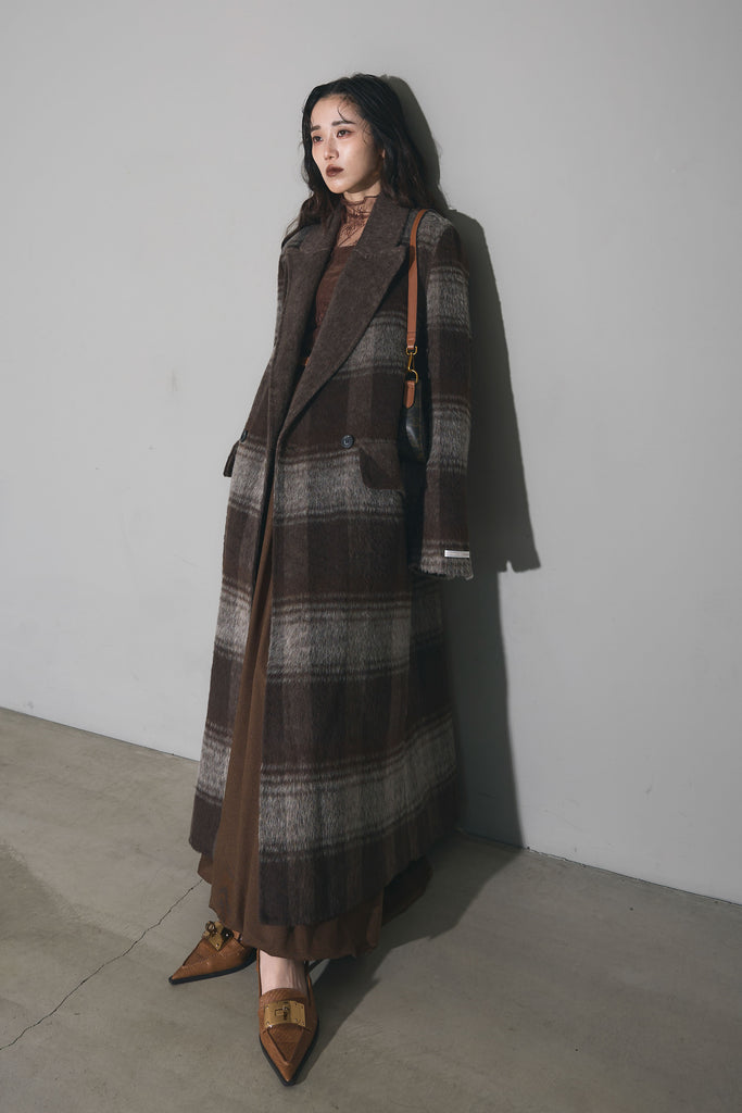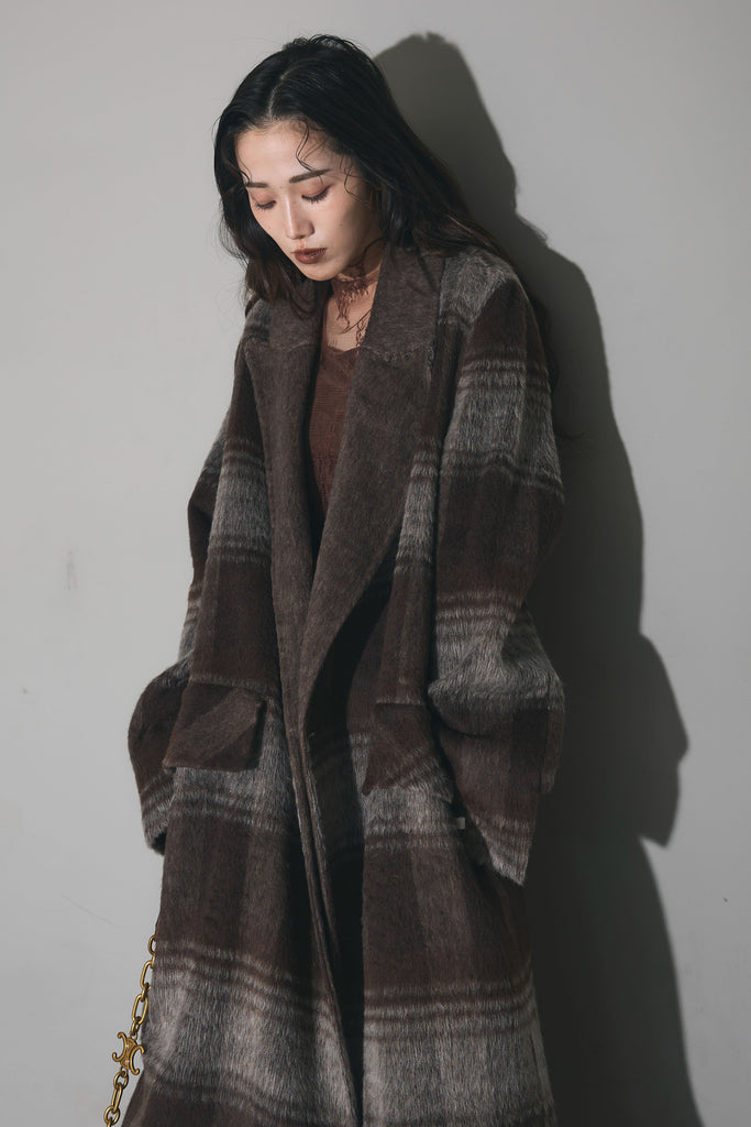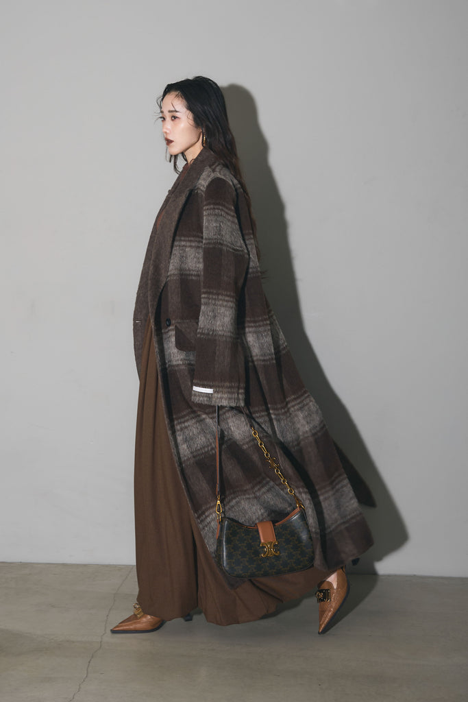 クラシカルなチェック柄が目を惹くロングコート。 ゆったりとしたシルエットで、羽織るだけでこなれ感を演出。 長めの丈がスタイルを美しく見せ、寒い季節も暖かく包み込んでくれます。 カジュアルからきれいめまで、幅広いコーディネートに活躍する一着です。