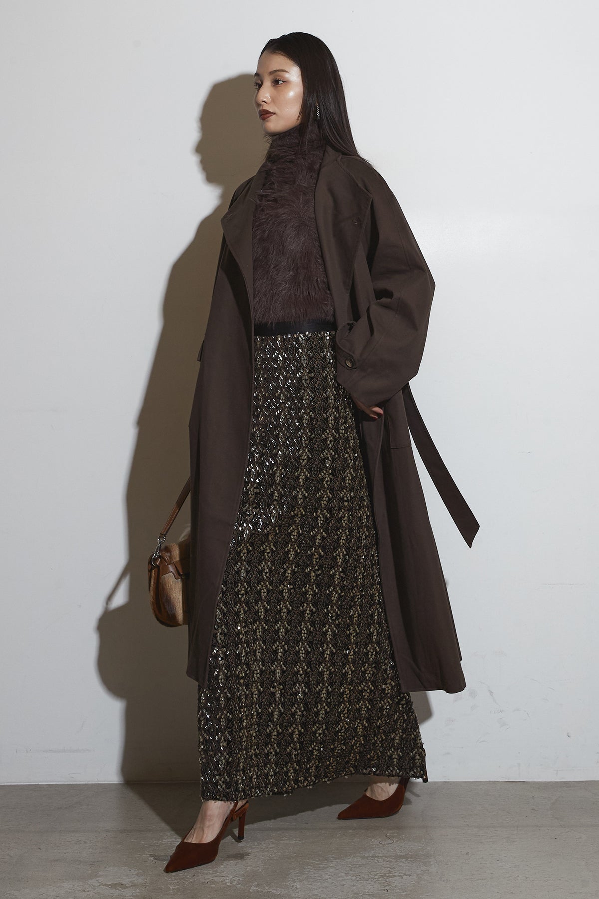 ベルテッドロングコート