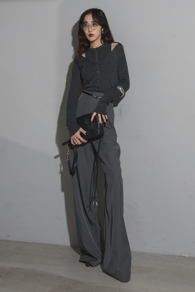 美しいラインを描くハイウエストスラックス。 程よくワイドなシルエットが脚のラインをまっすぐに見せ、スタイルアップ効果を叶えます。 さらりとした生地感でシーズン問わず着用しやすく、シンプルながらも存在感のある一本。 トップスをインして着ることで、よりバランスの取れたモードなスタイリングに仕上がります。 ※ベルトは付属しません。