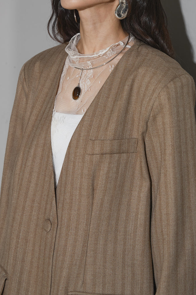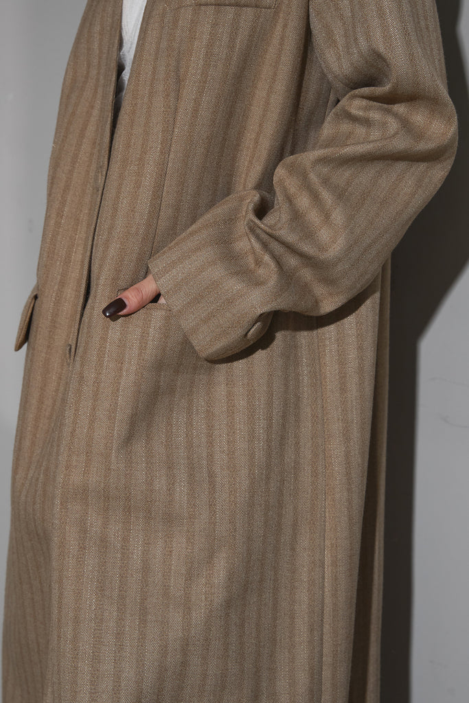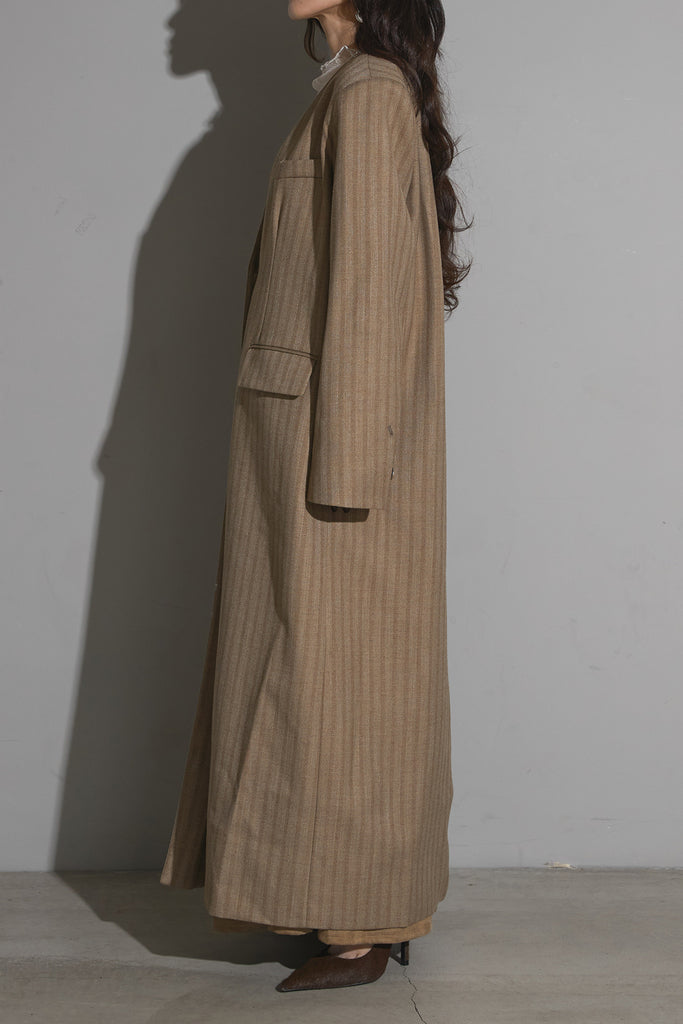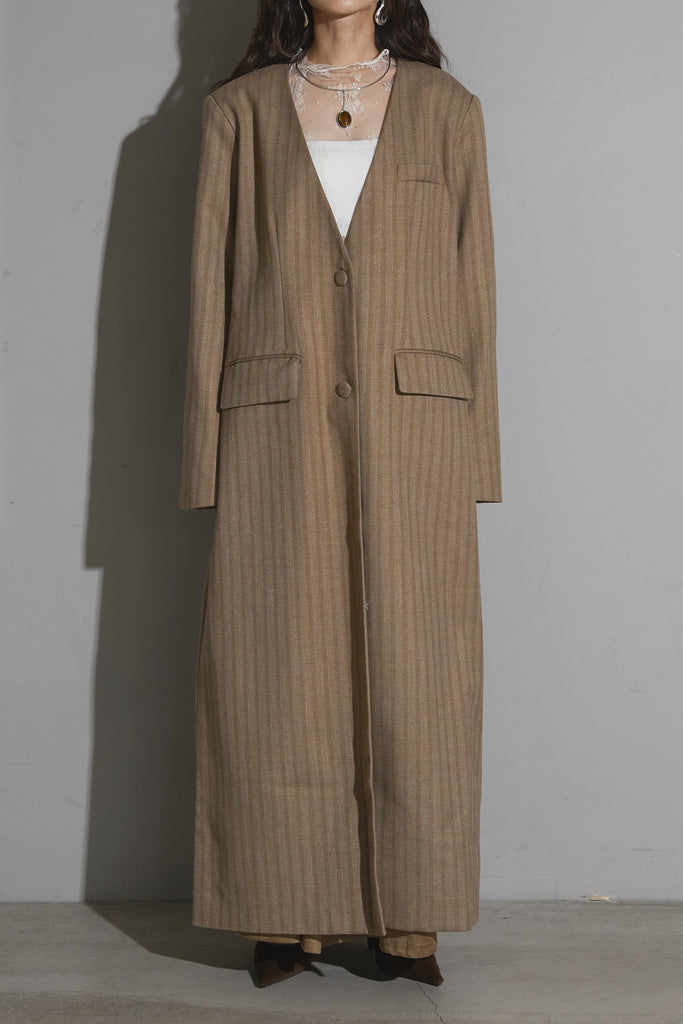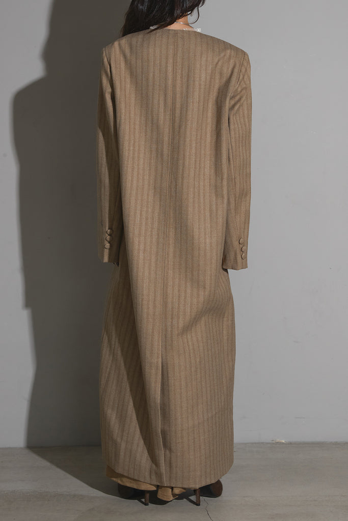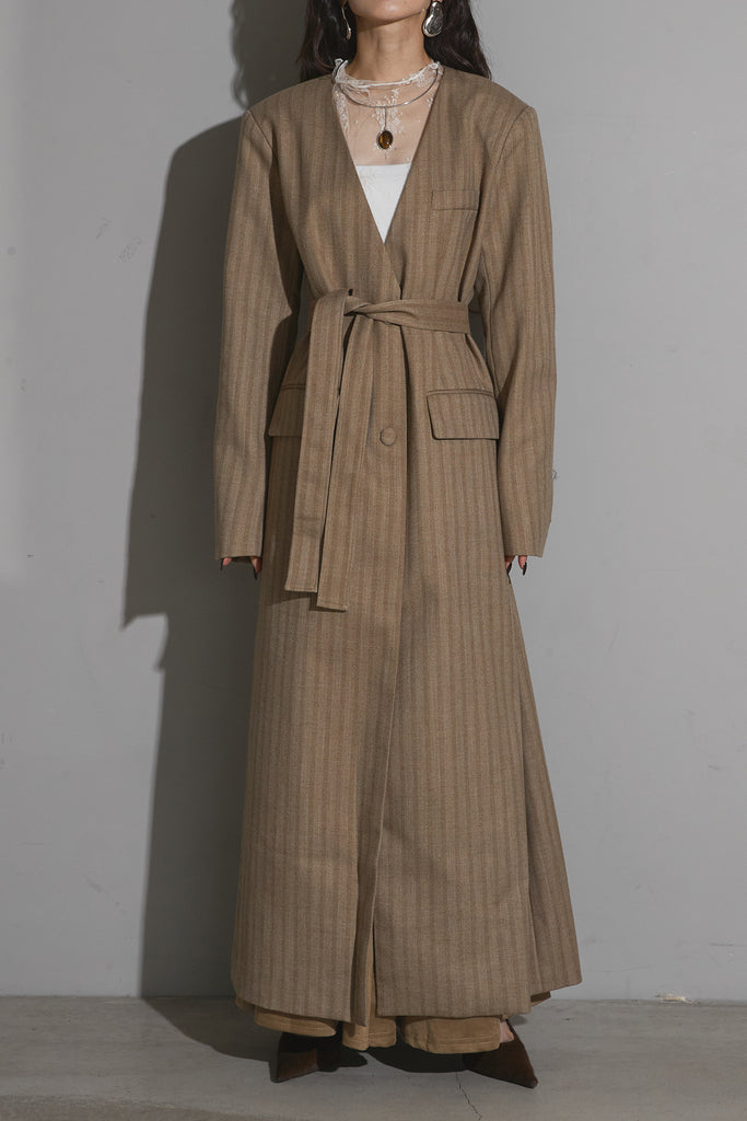 ストライプノーカラーコート