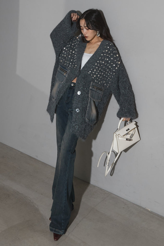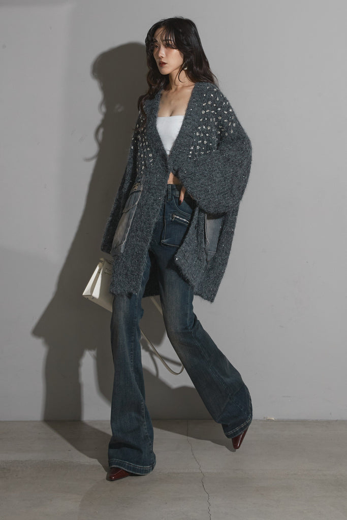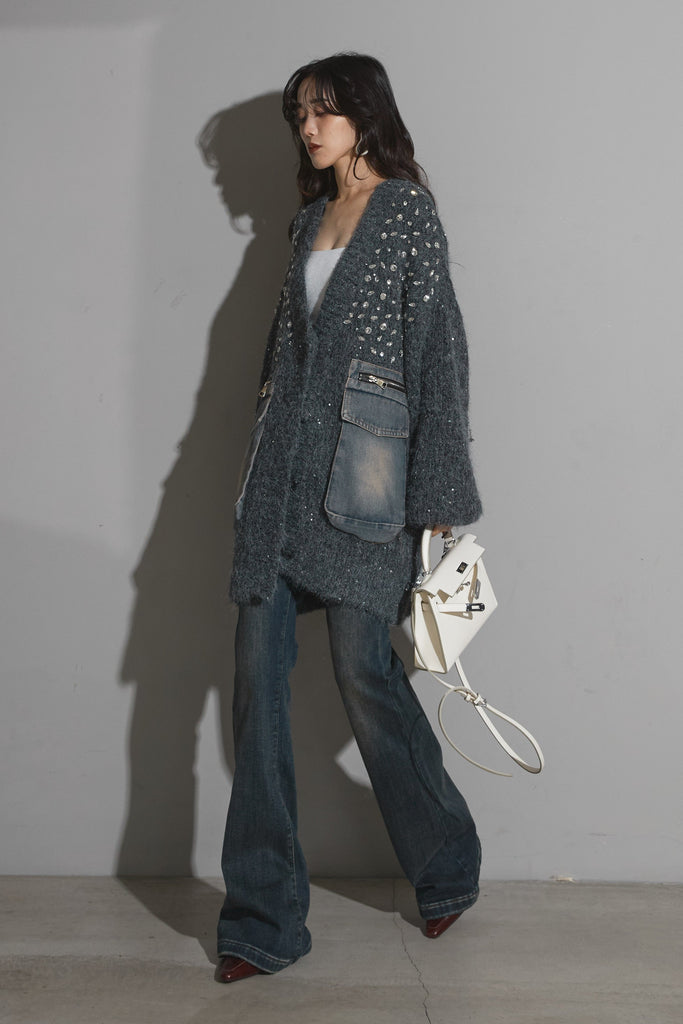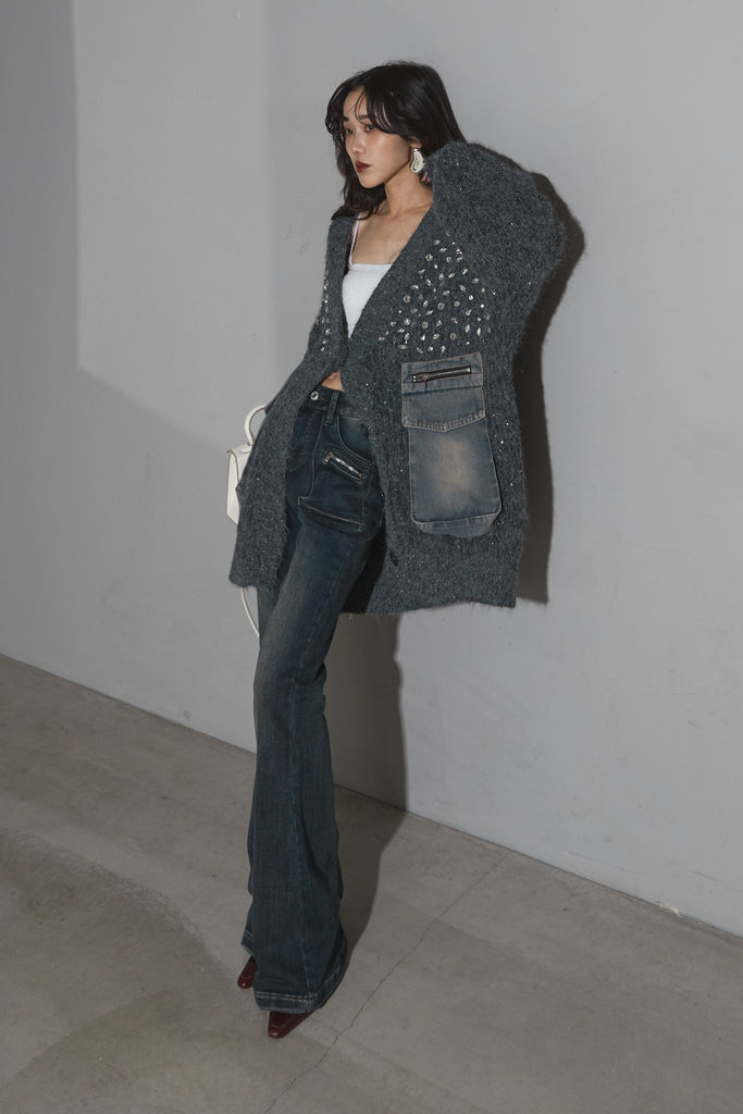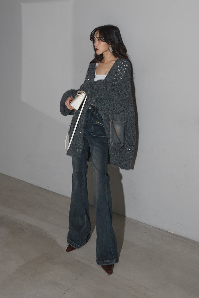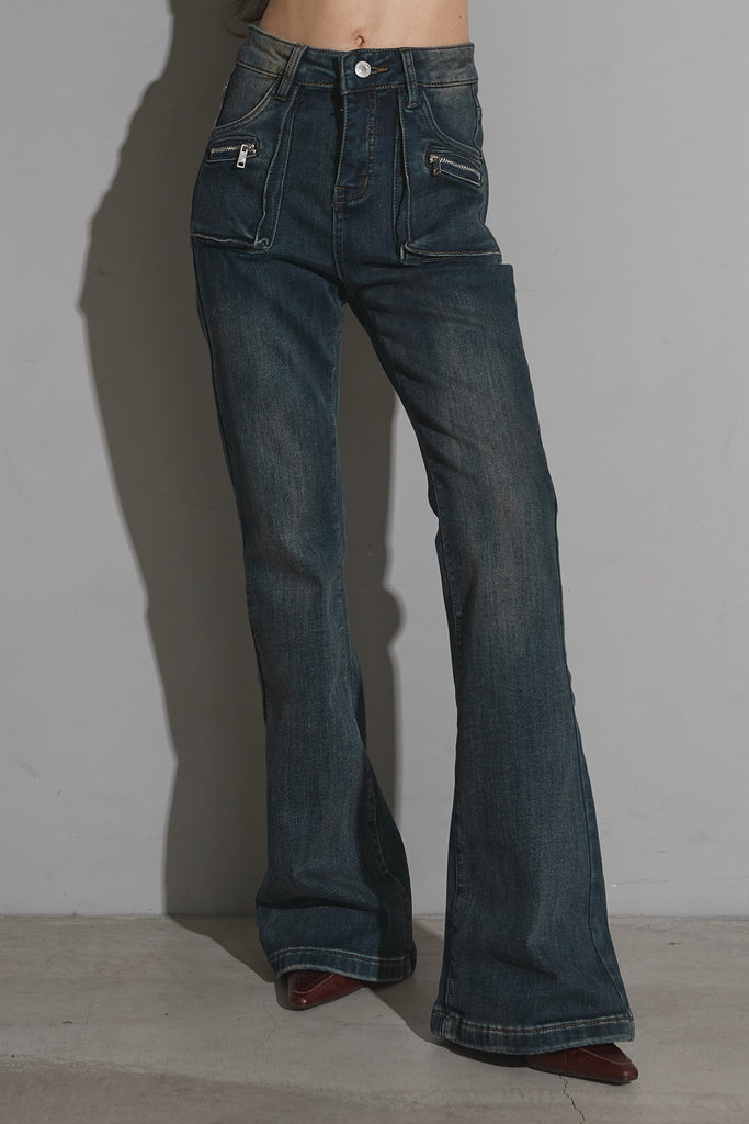 美しいラインを描くフレアシルエットのデニムパンツ。 程よいストレッチ感とハイウエスト設計で、スタイルアップを叶える一着です。 フロントとバックに施されたジップディテールがアクセントとなり、モードな雰囲気をプラス。 シンプルなトップスを合わせるだけで、抜け感のある大人カジュアルスタイルが完成します。