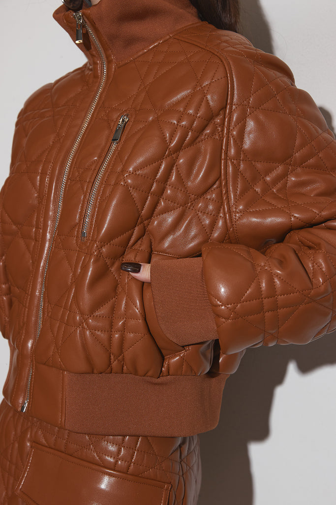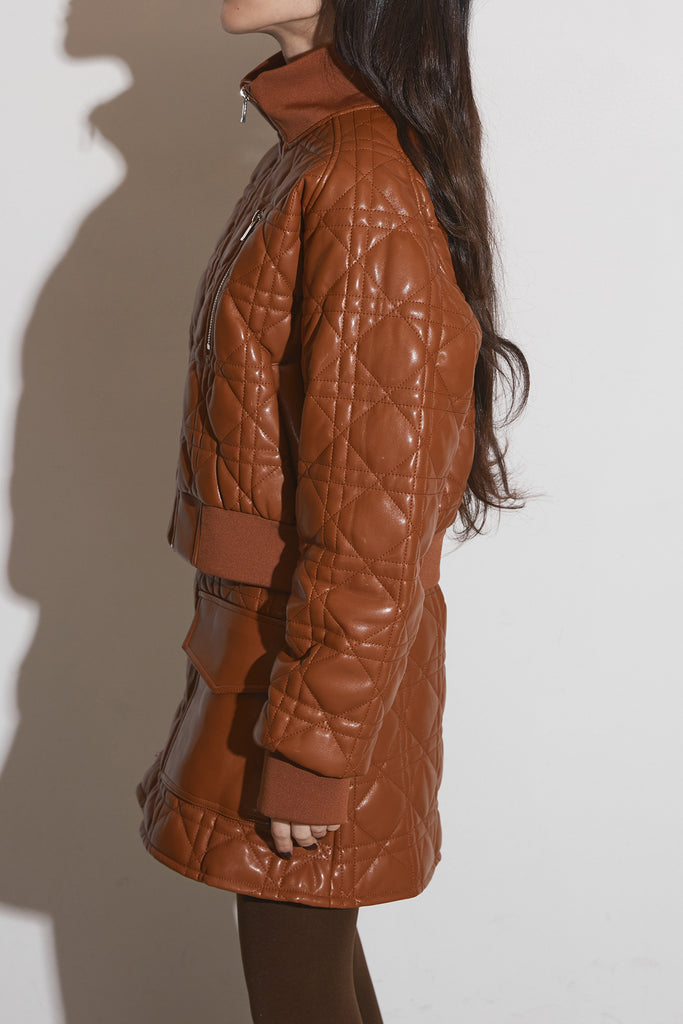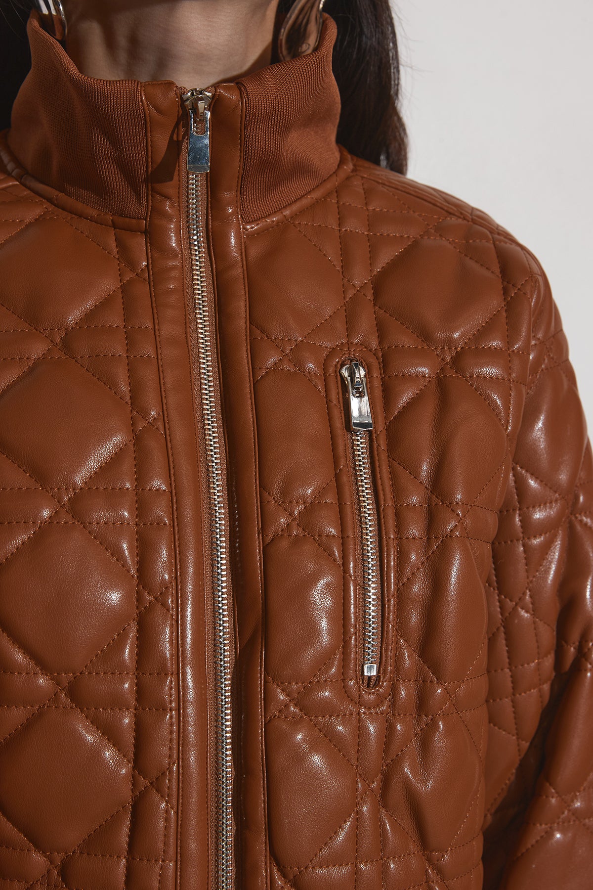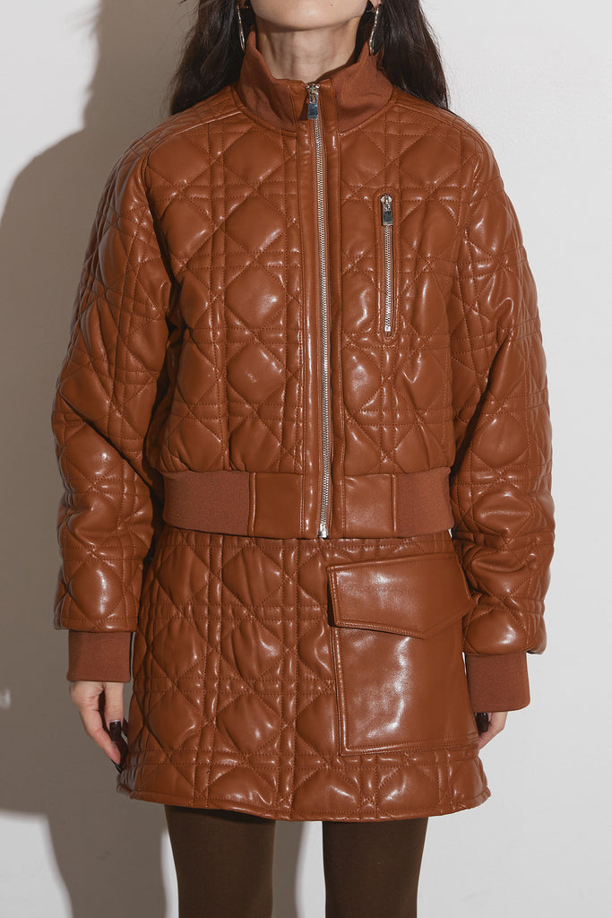 キルティングデザインが印象的なセットアップ。 程よく光沢のある素材で、立体的な表情と上品な存在感を演出します。 ブルゾンはジップ仕様で着脱がしやすく、スカートはポケットデザインがアクセントに。 セットで着用するとスタイリッシュな雰囲気に、単品でも着回しやすい万能アイテムです。