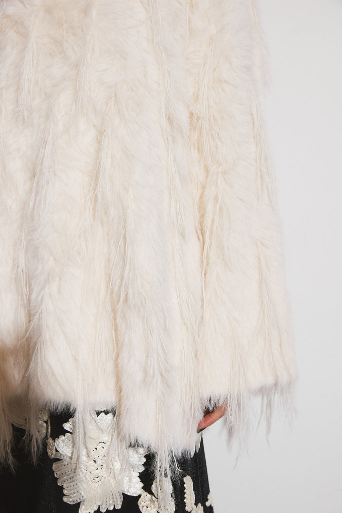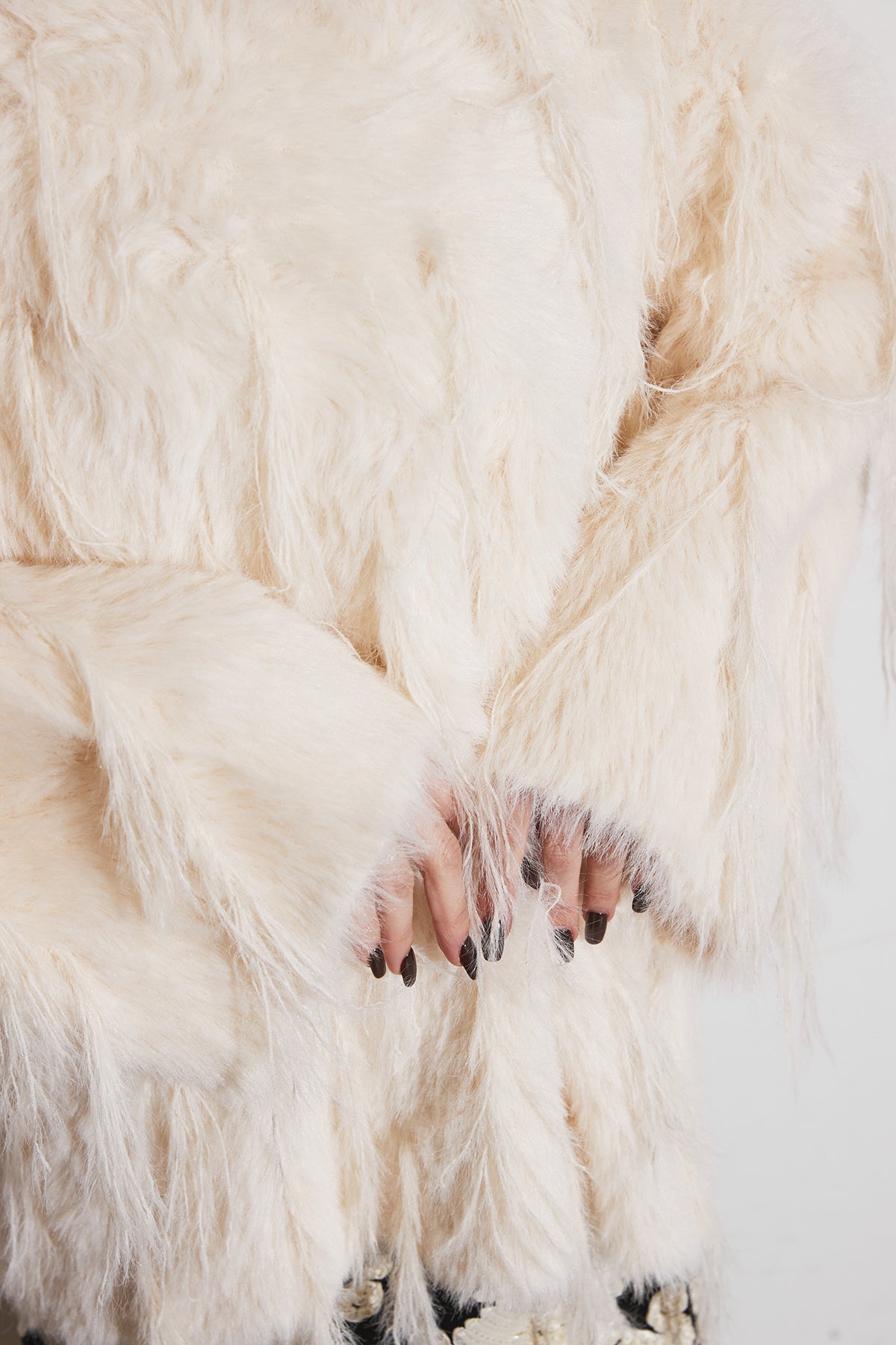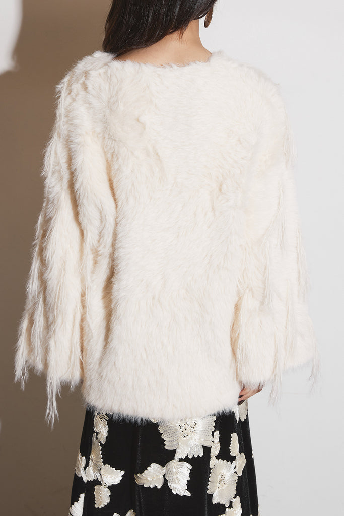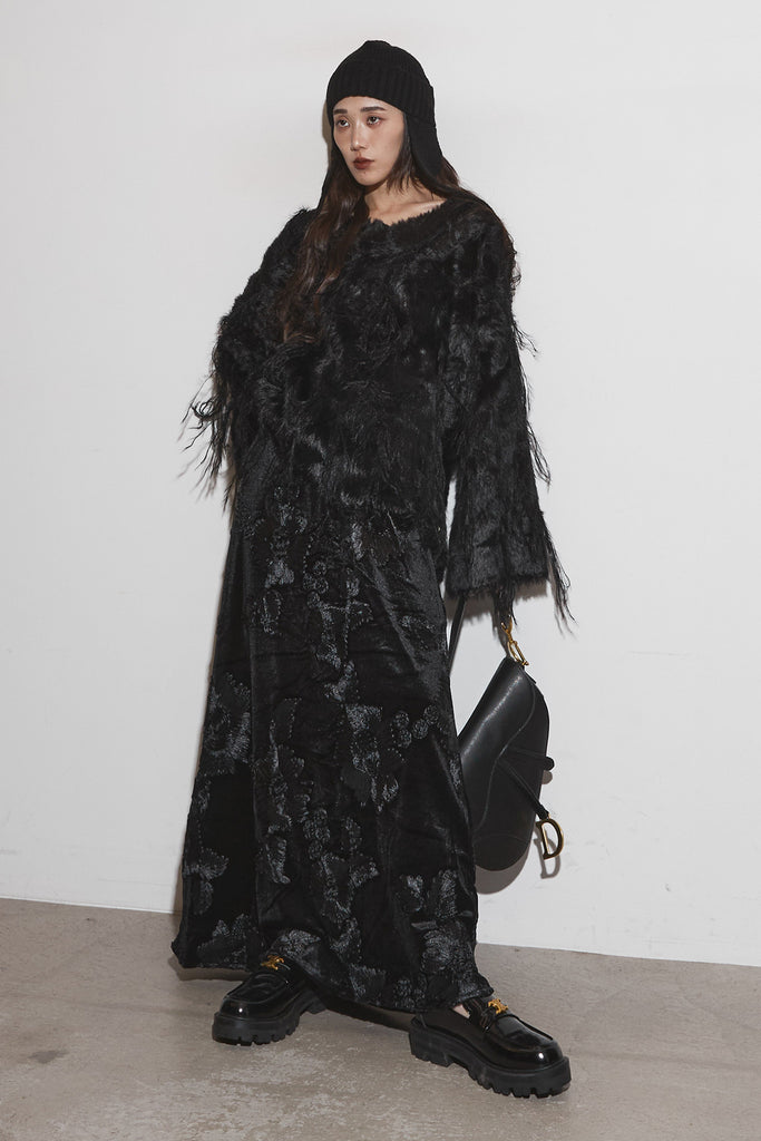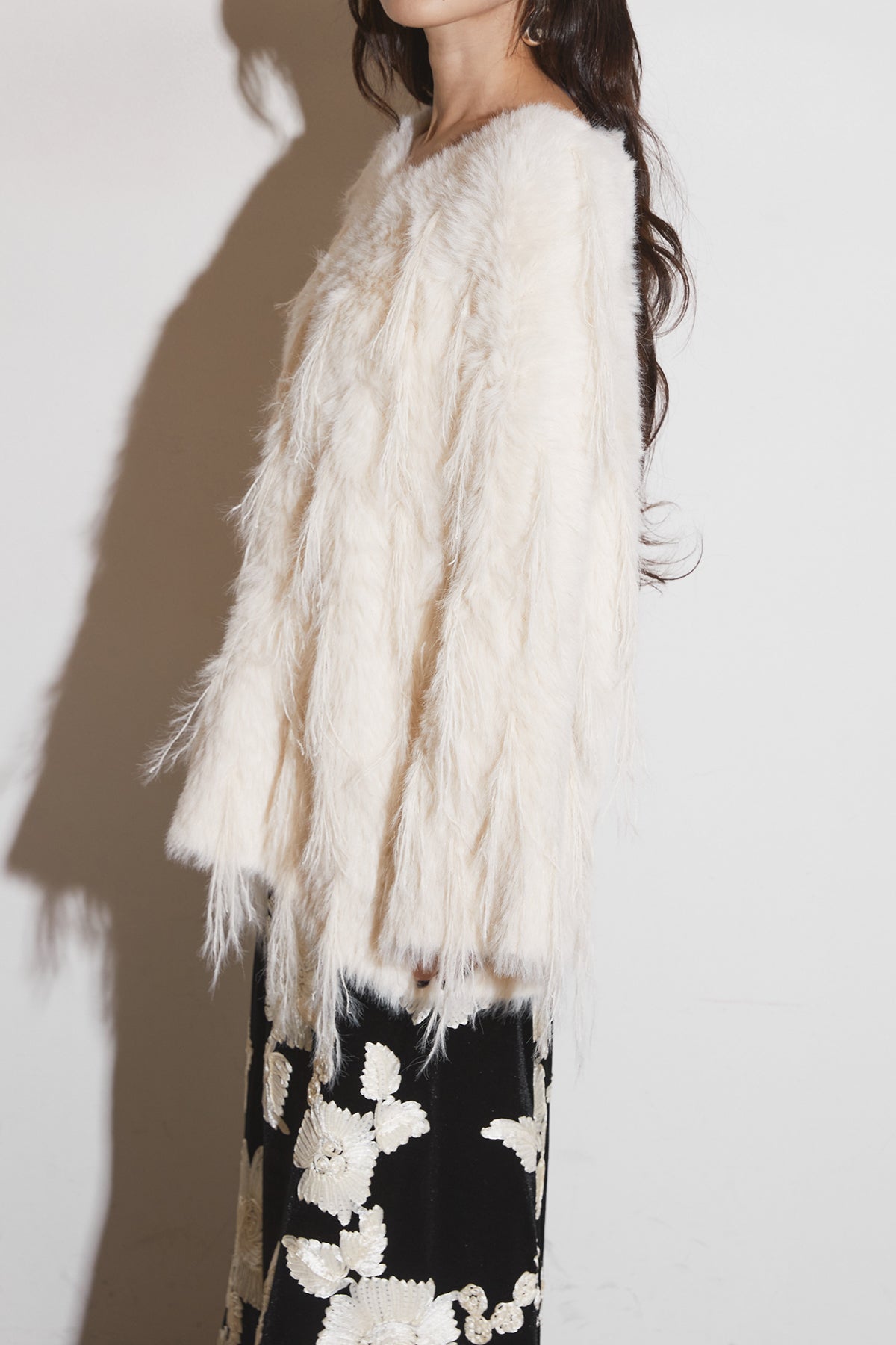 毛足の長いシャギー素材が目を惹くフェザーニット。 ふんわりとした質感がシーズンムードを高め、 一枚でスタイリングの主役になるアイテムです。 ゆったりとしたシルエットで抜け感を演出しつつ、 軽やかな素材感で女性らしい印象に仕上げています。 シンプルなボトムを合わせるだけで、上品で華やかなスタイルが完成します。