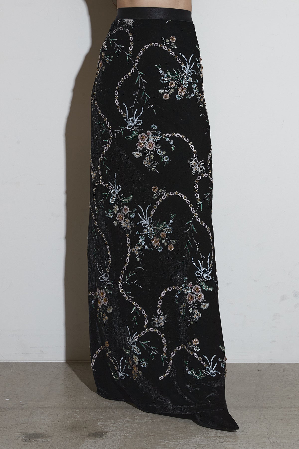 ボタニカル刺繍ベロアスカート