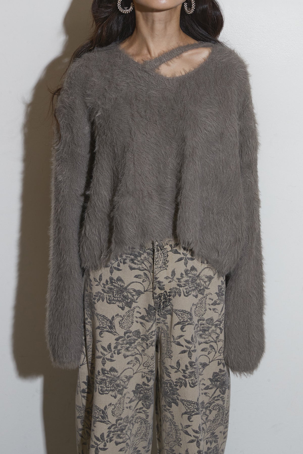 ふわっとした質感のプルオーバートップス。肩元に施したカッティングがさりげないアクセントになり、ゆるめのシルエットで抜け感のある一枚です。