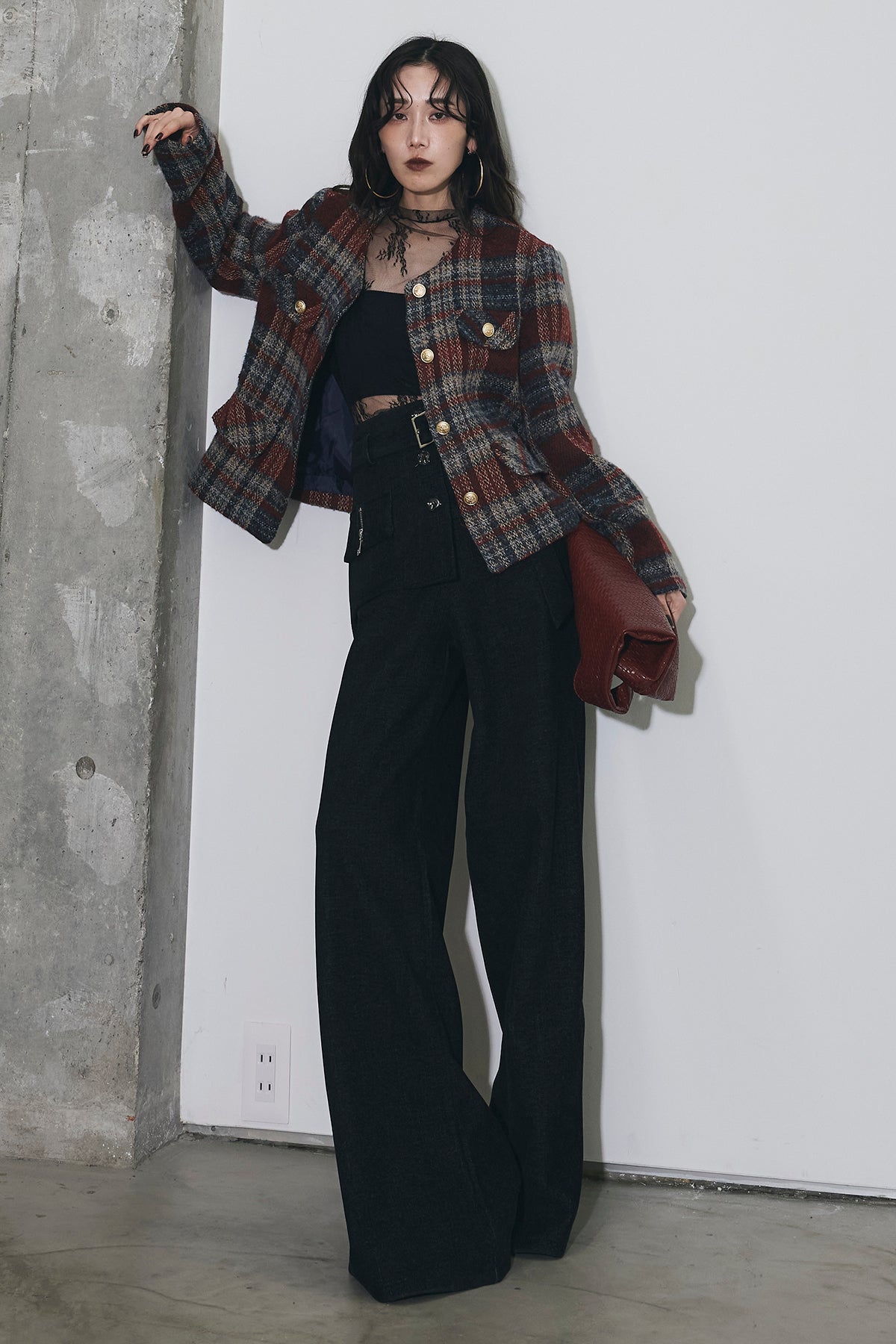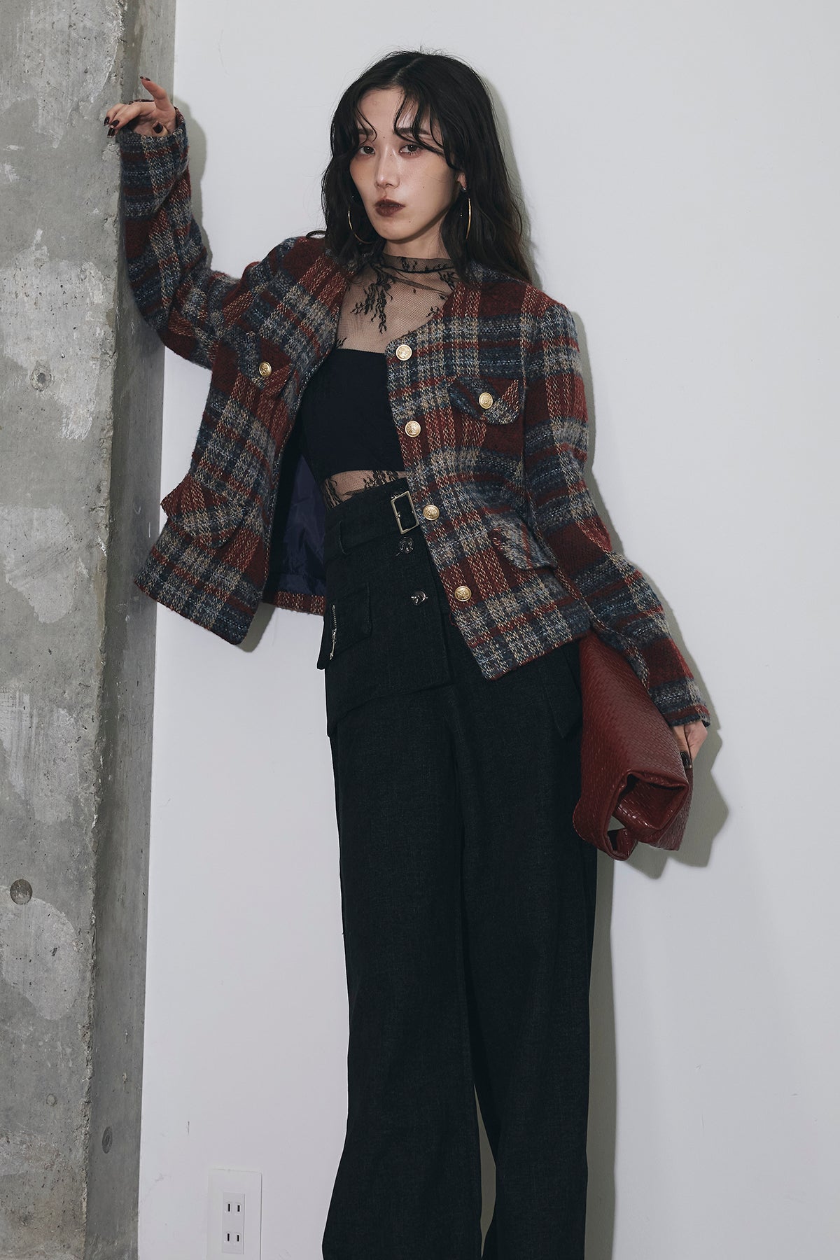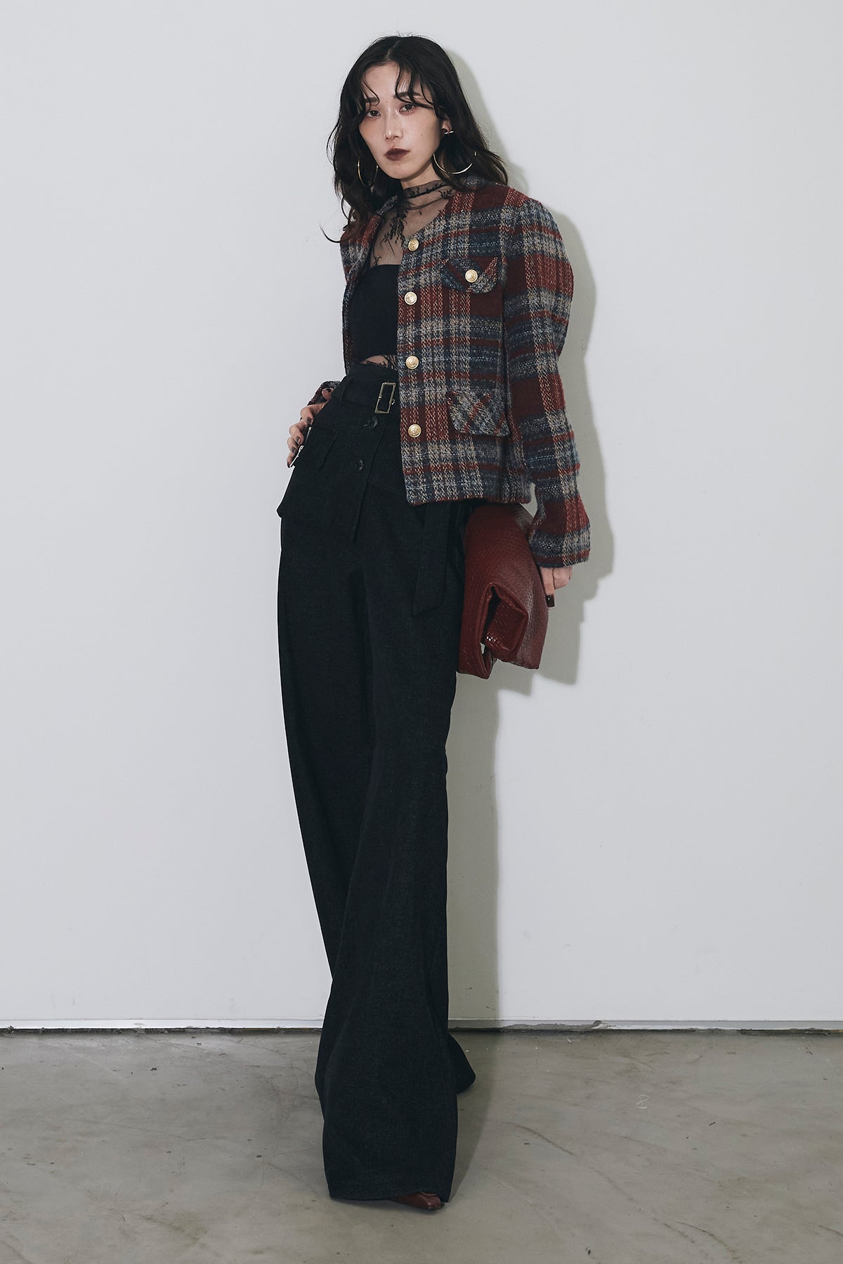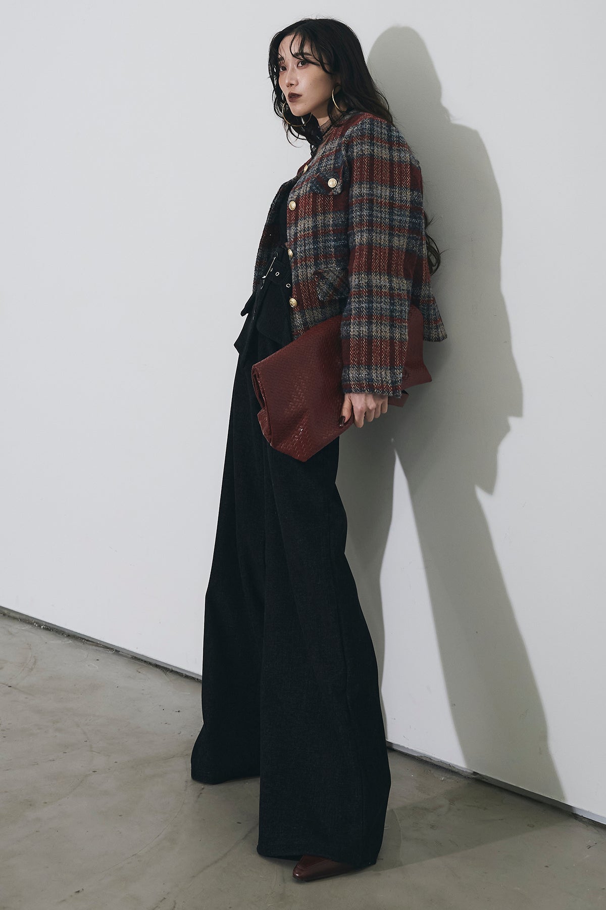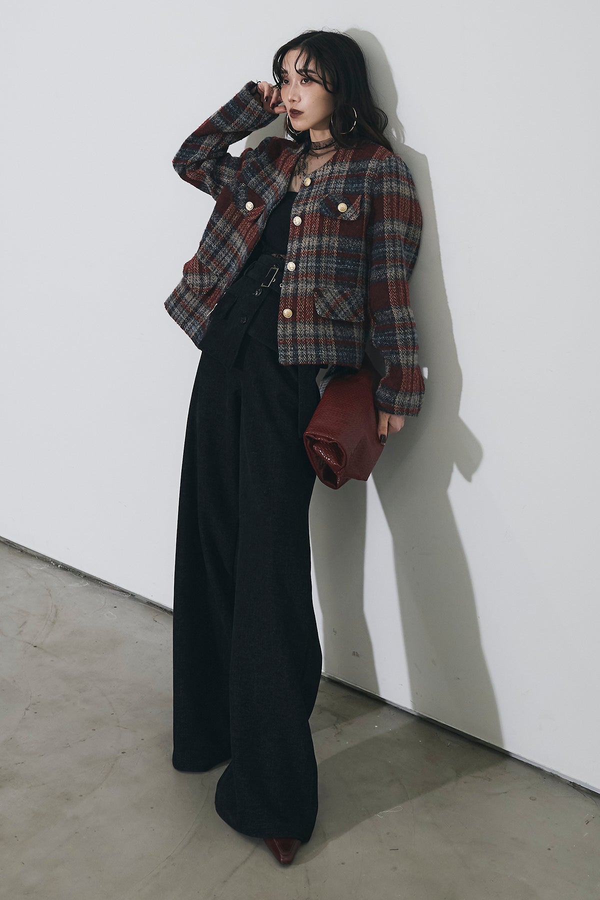 深みのあるカラーリングが印象的なチェックツイードジャケット。 しっかりとした厚みのある生地でシーズンムードを高め、 ゴールドボタンが上品なアクセントに。 ややショート丈のバランスがスタイルアップを叶え、 デニムからワイドパンツまで幅広くマッチします。 シンプルなインナーを合わせるだけで洗練されたクラシックスタイルに。