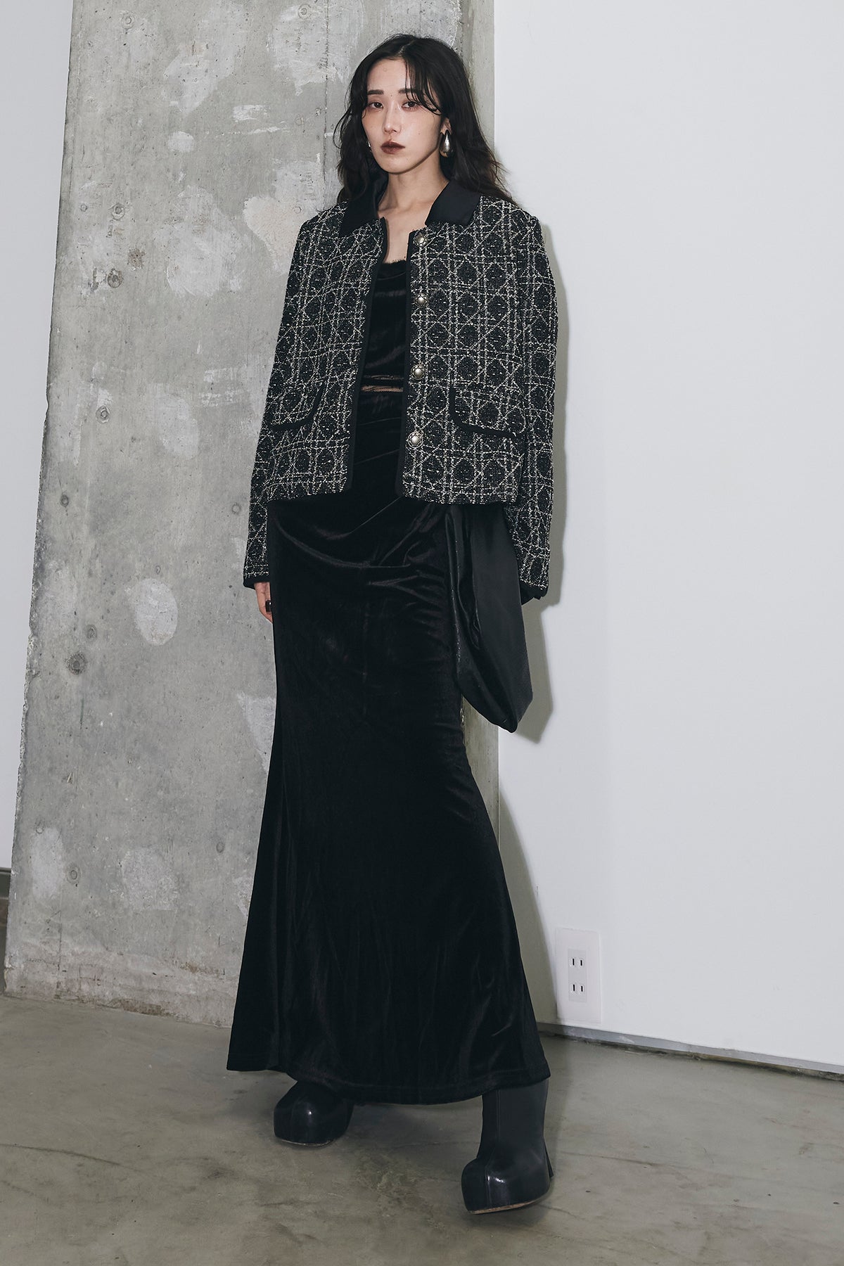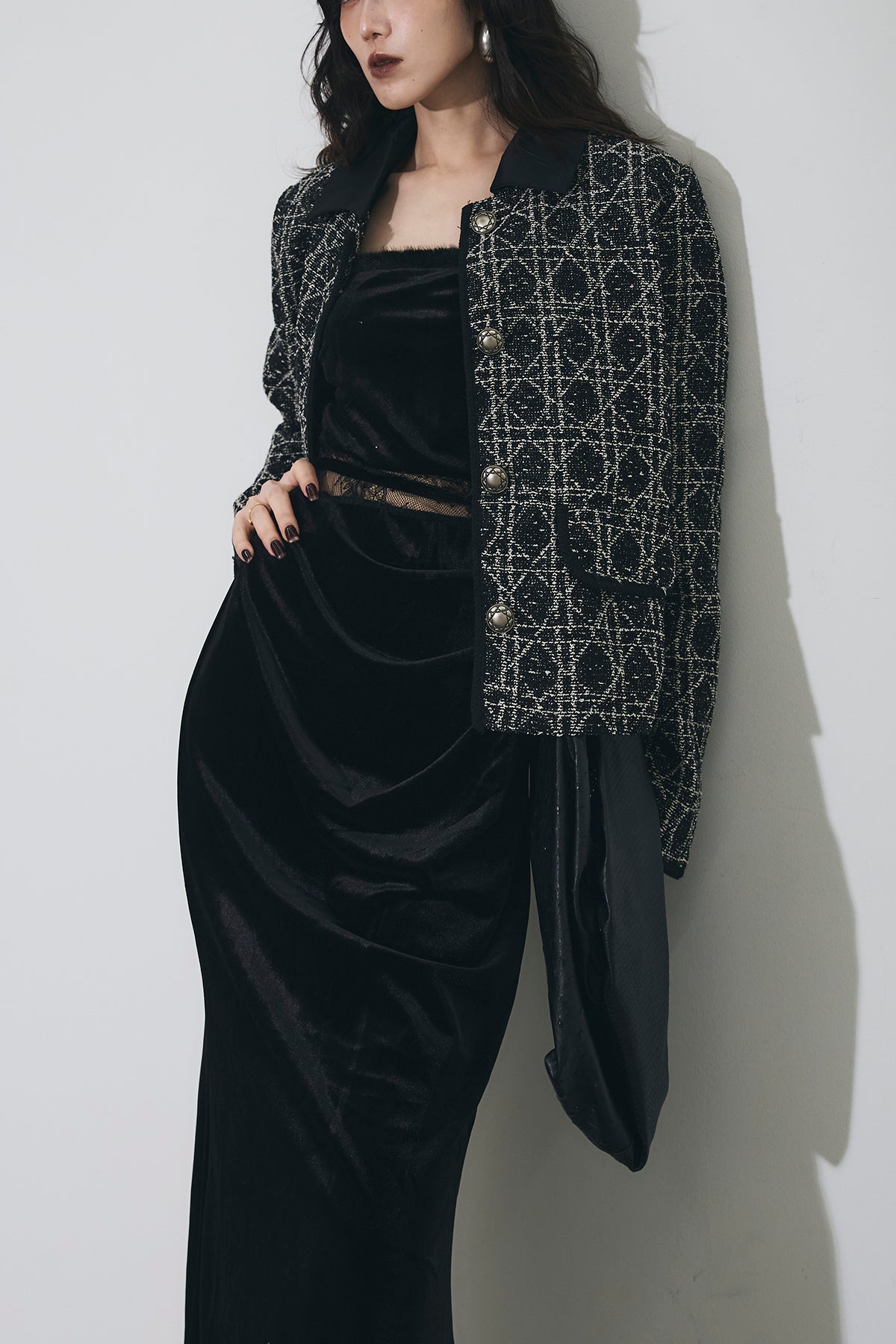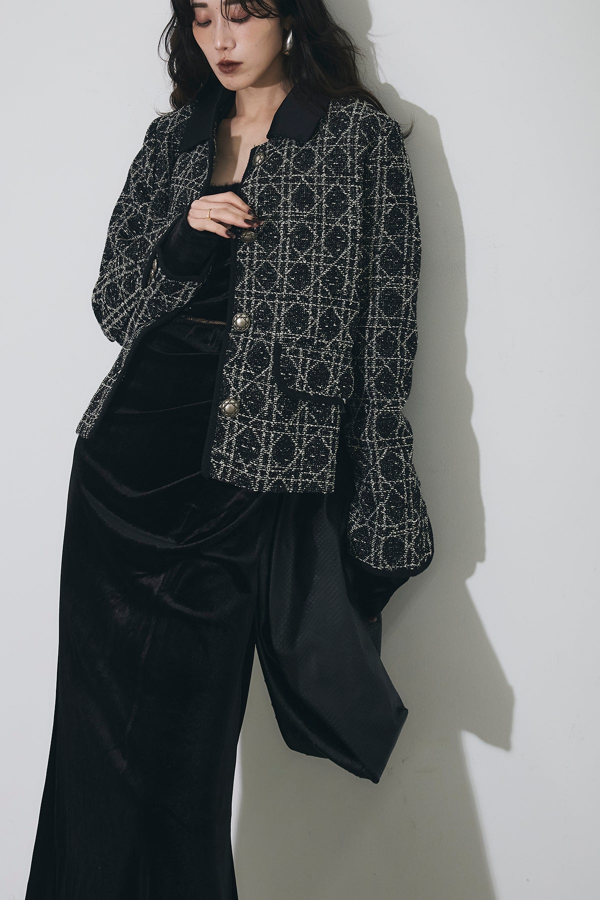 ご注文前に必ずページ下部「お届け期間」をご確認くださいませ。艶やかなベルベット素材を使用した、エレガントなダブルボタンジャケット。 程よいショート丈でバランスが取りやすく、スタイルアップ効果も。 立体的なゴールドボタンがクラシカルな印象を引き立て、 シンプルなコーディネートに取り入れるだけでドレスライクな存在感を放ちます。 裏地付きで着心地も良く、軽やかな羽織りとして秋冬の主役アウターにぴったり。