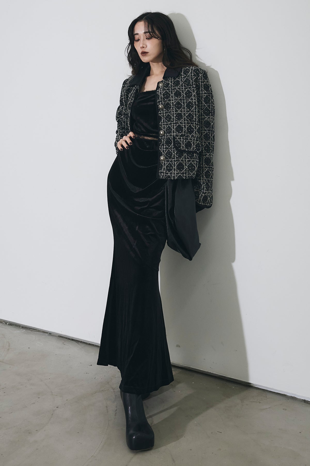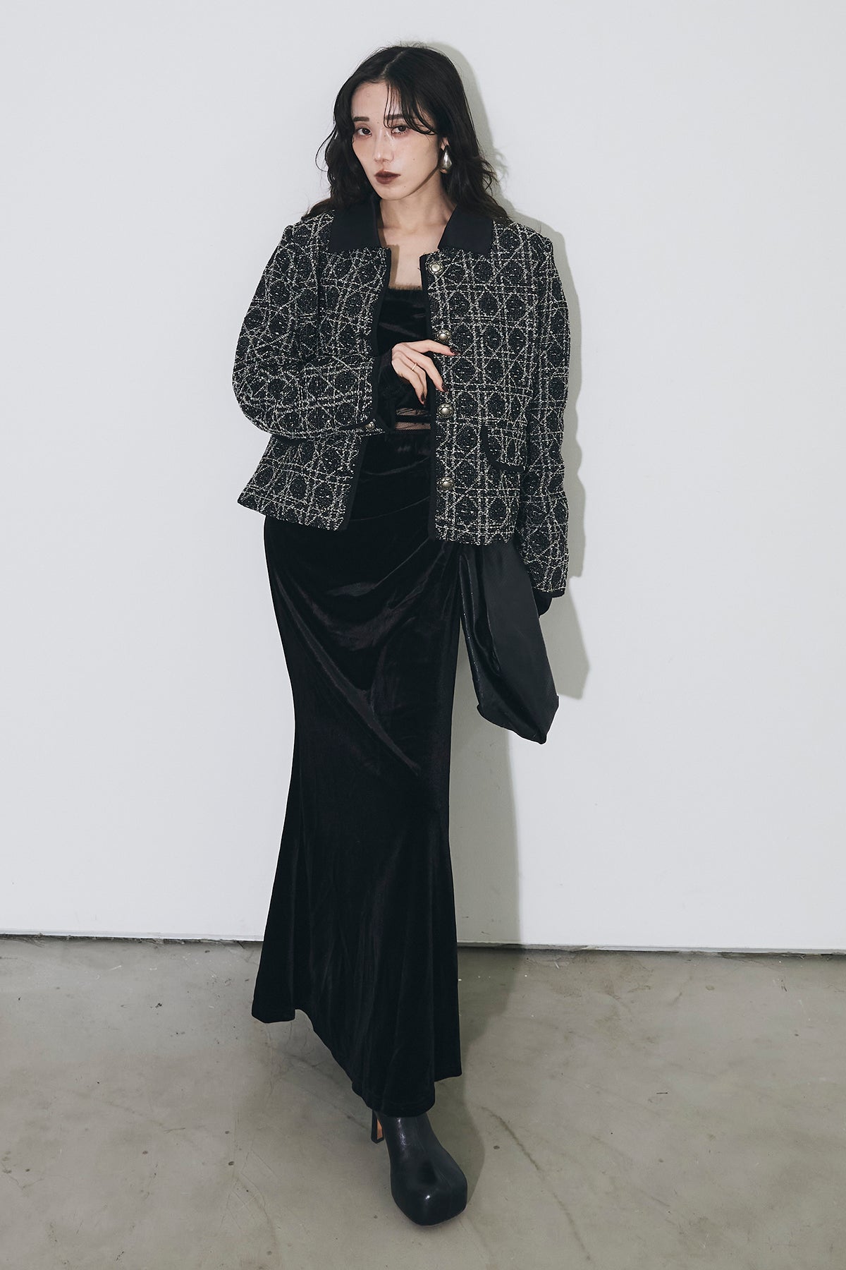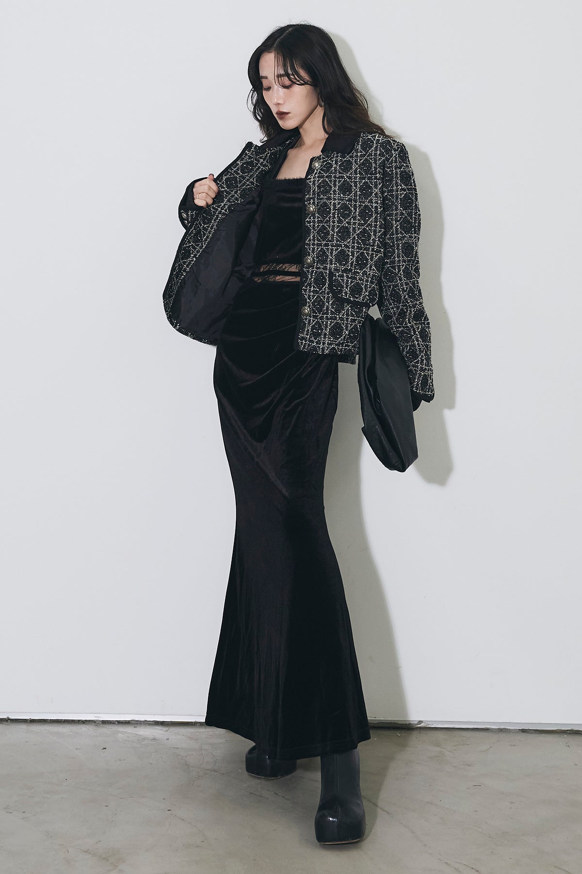 ご注文前に必ずページ下部「お届け期間」をご確認くださいませ。艶やかなベルベット素材を使用した、エレガントなダブルボタンジャケット。 程よいショート丈でバランスが取りやすく、スタイルアップ効果も。 立体的なゴールドボタンがクラシカルな印象を引き立て、 シンプルなコーディネートに取り入れるだけでドレスライクな存在感を放ちます。 裏地付きで着心地も良く、軽やかな羽織りとして秋冬の主役アウターにぴったり。