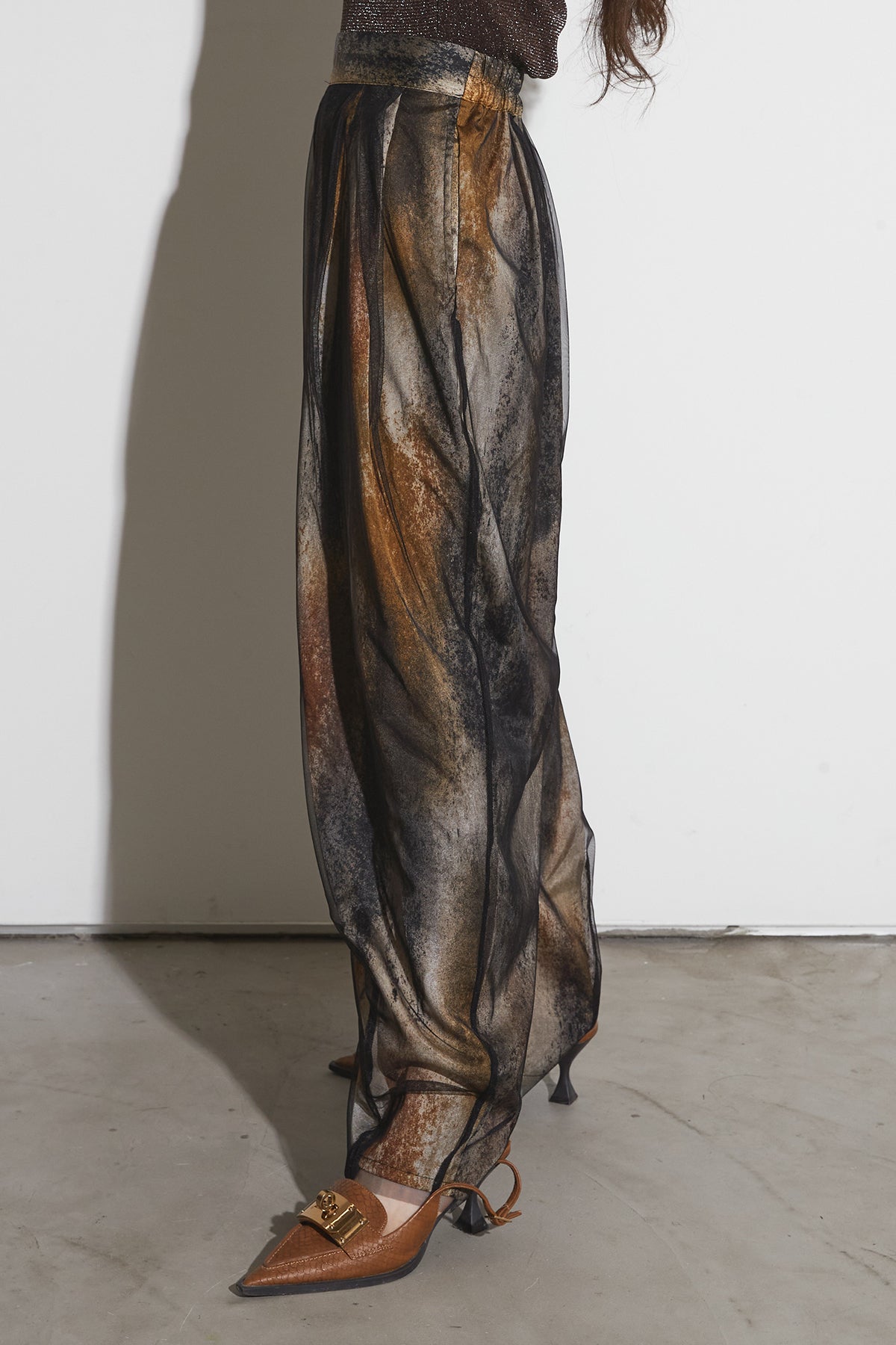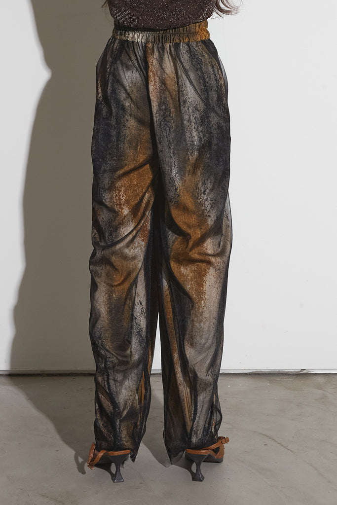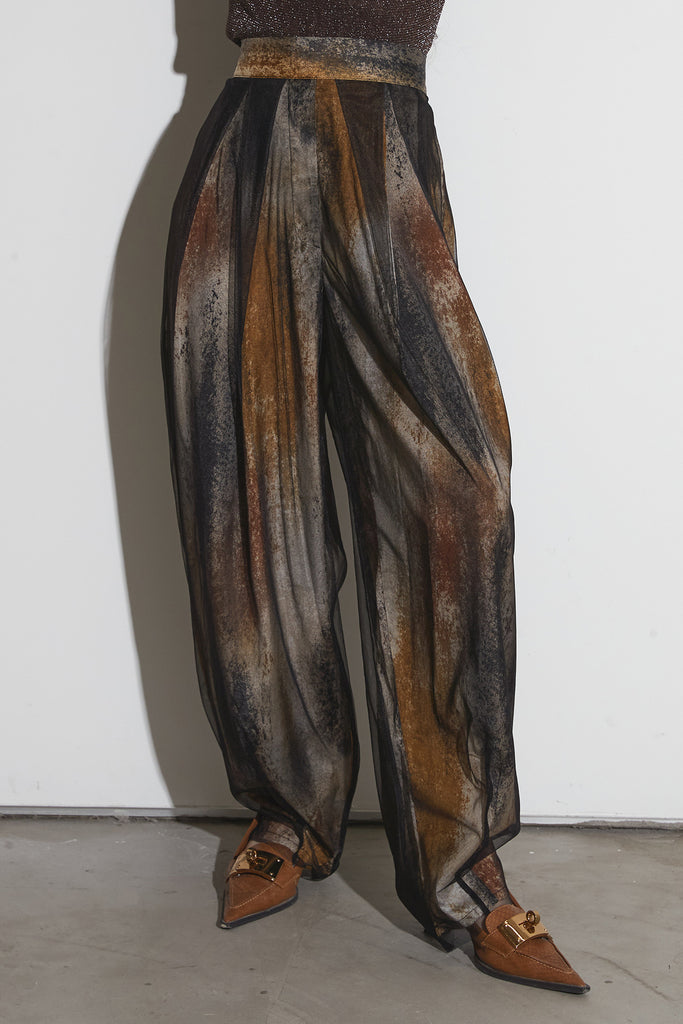 大胆なプリントが目を惹くワイドパンツ。 ゆったりとしたシルエットでリラックス感がありながら、存在感のあるデザインでスタイリングの主役に。 シンプルなトップスと合わせるだけでモードな印象を演出します。