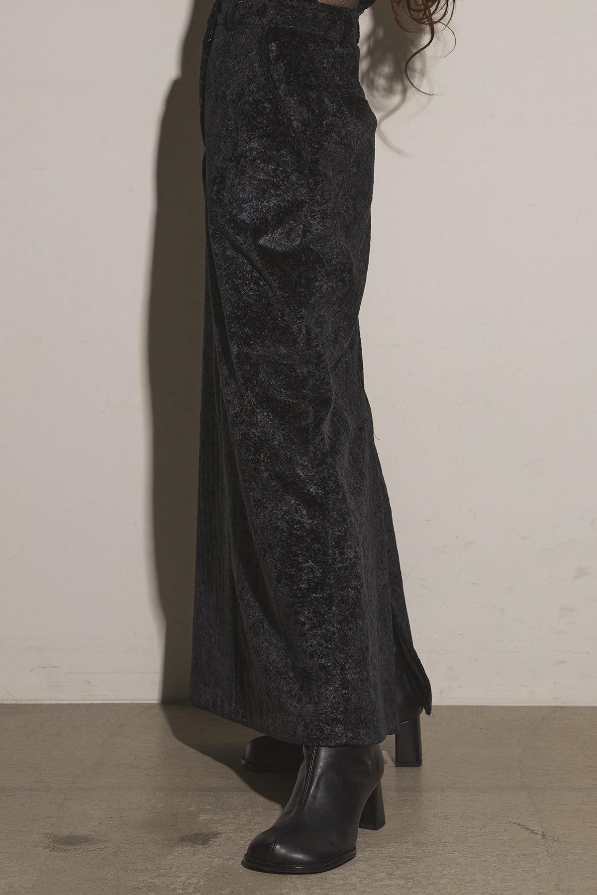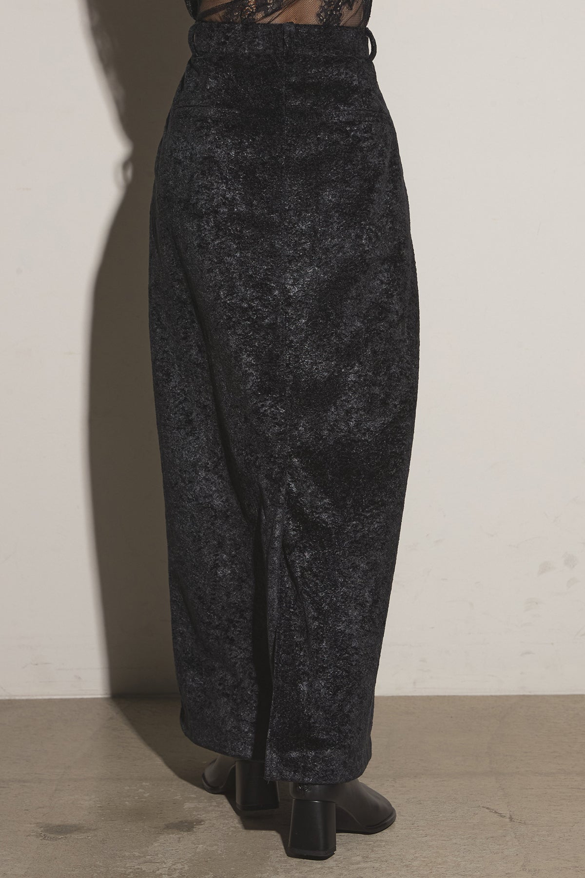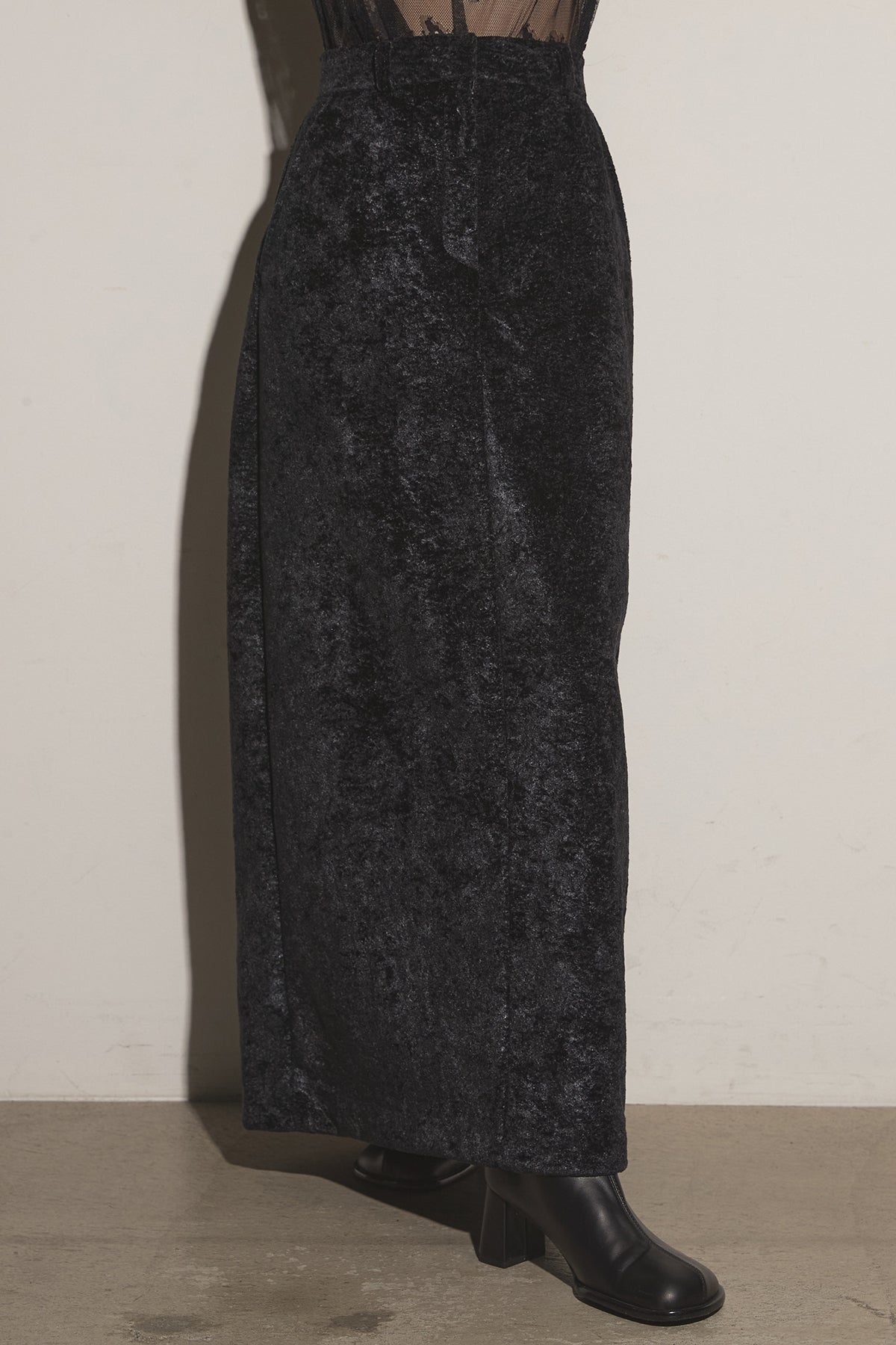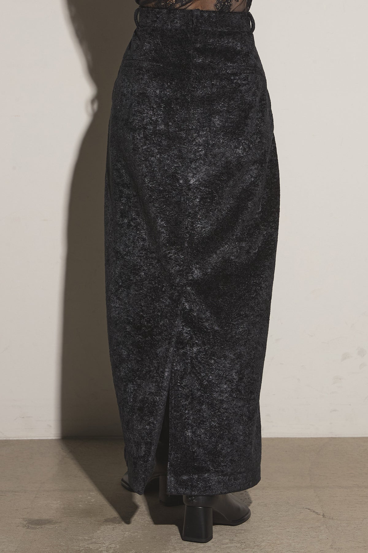 表情のある起毛素材がコーデに奥行きをプラスするロングスカート。ハイウエスト×すっきりシルエットでスタイルアップ見えし、裾にかけて程よく広がるラインが女性らしい印象に。シンプルなトップス合わせでも映える一枚です。