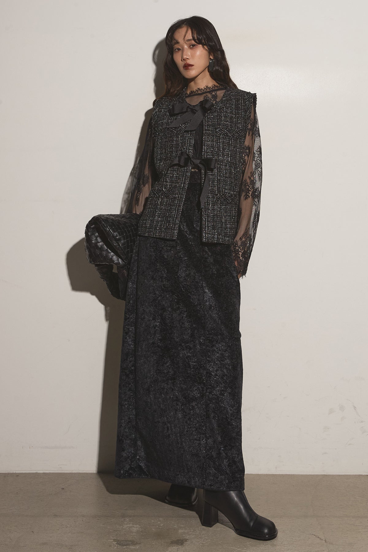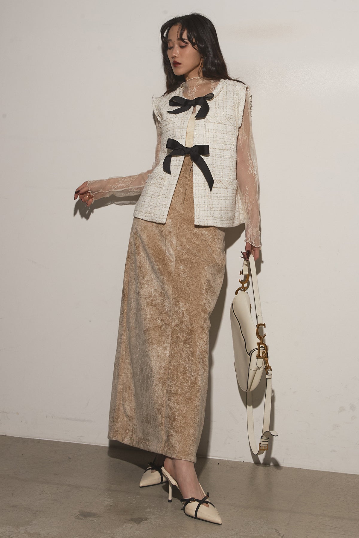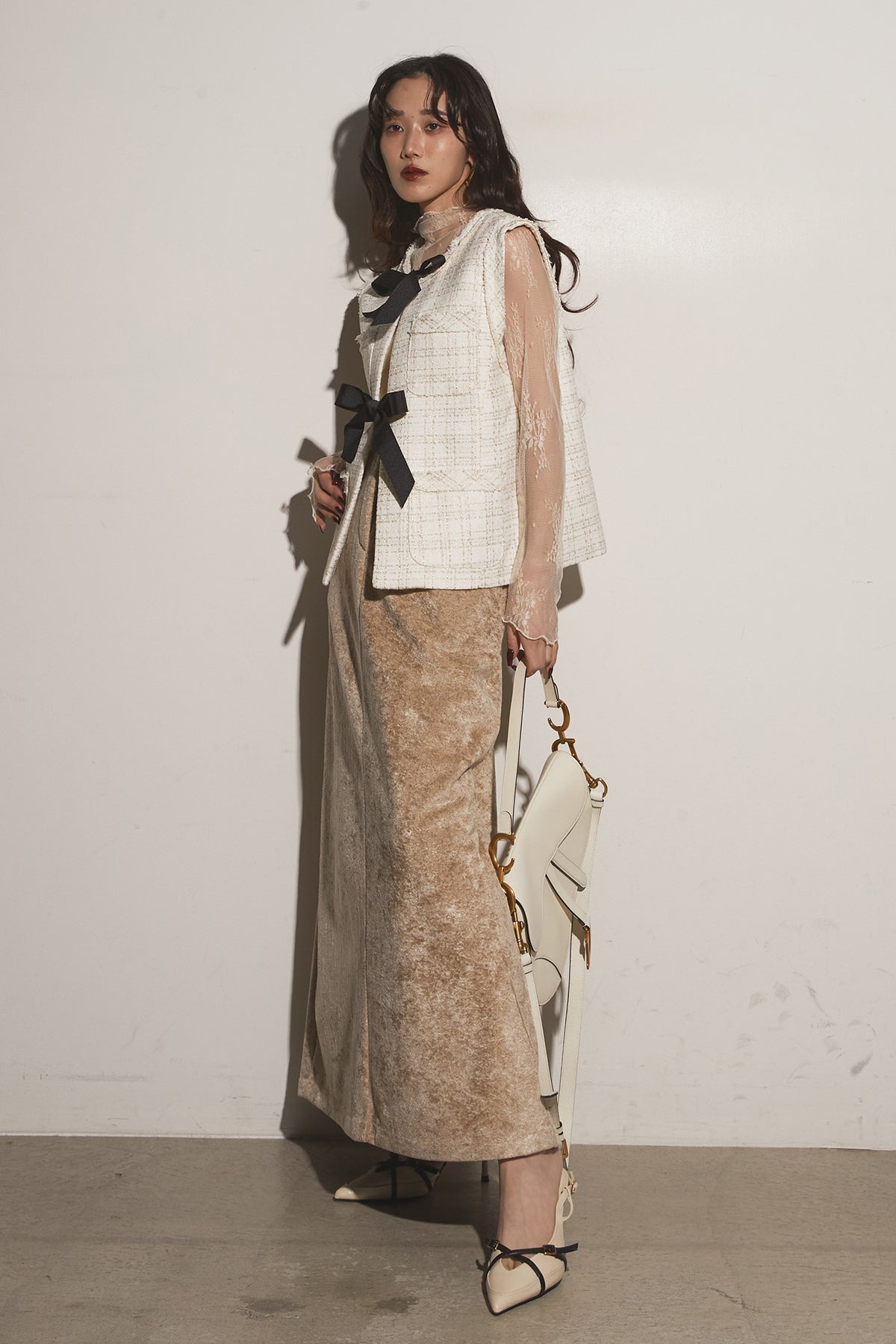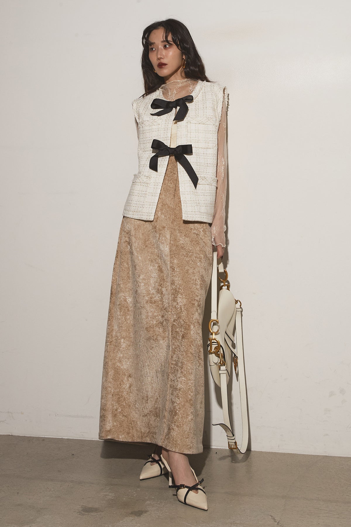 表情のある起毛素材がコーデに奥行きをプラスするロングスカート。ハイウエスト×すっきりシルエットでスタイルアップ見えし、裾にかけて程よく広がるラインが女性らしい印象に。シンプルなトップス合わせでも映える一枚です。