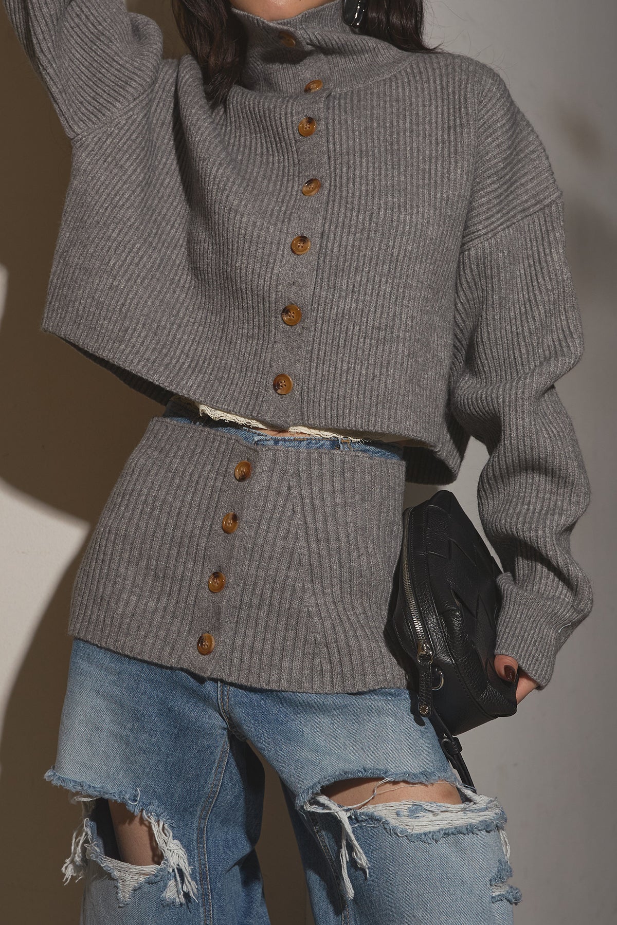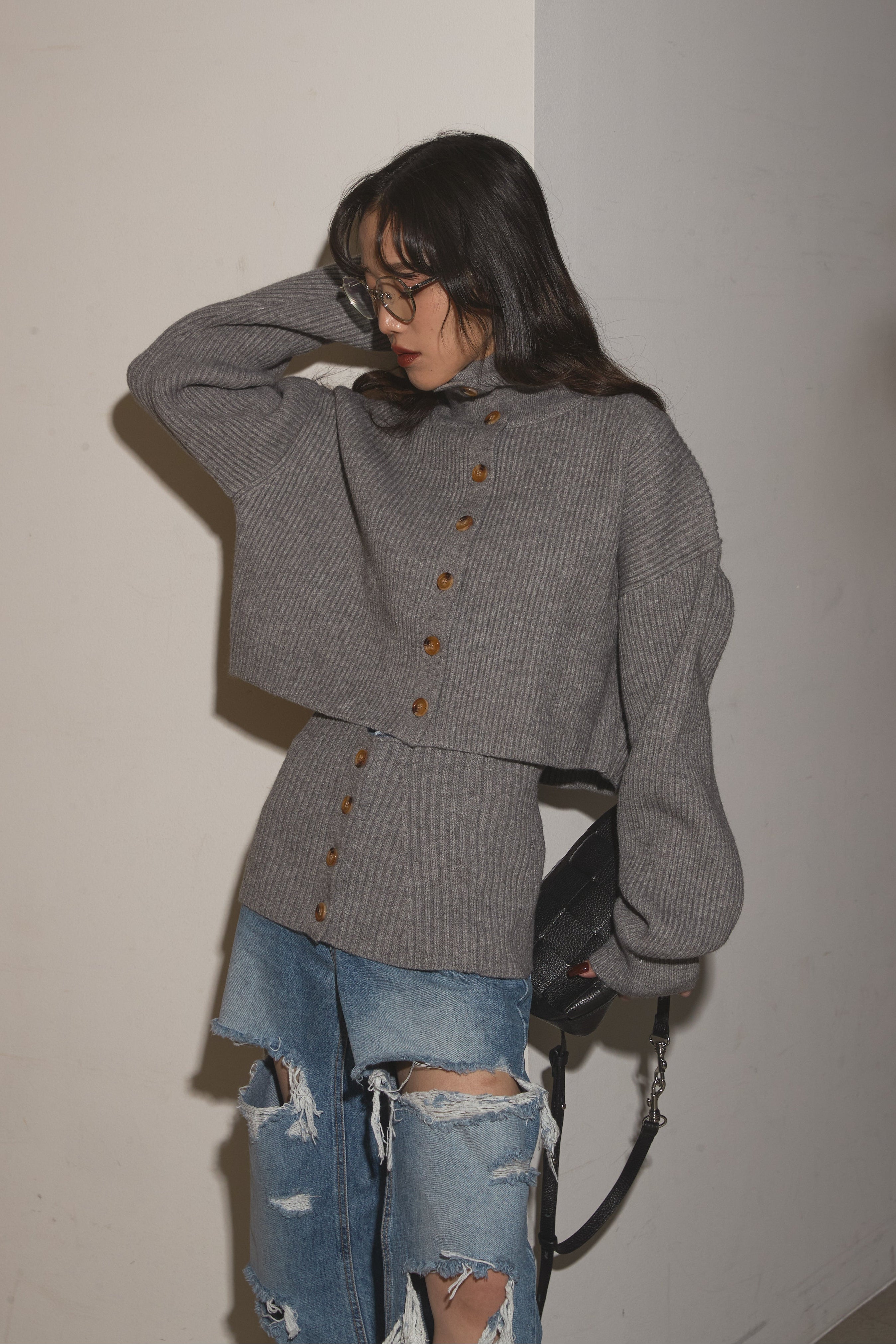首元に巻いてハイネック風にも、ウエストに巻いてレイヤード感も楽しめる2WAYデザイン。リブ編みの程よい厚みで、着こなしに立体感とアクセントをプラスします。ボタン仕様でアレンジしやすいのもポイント。