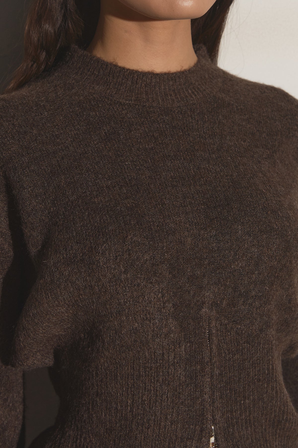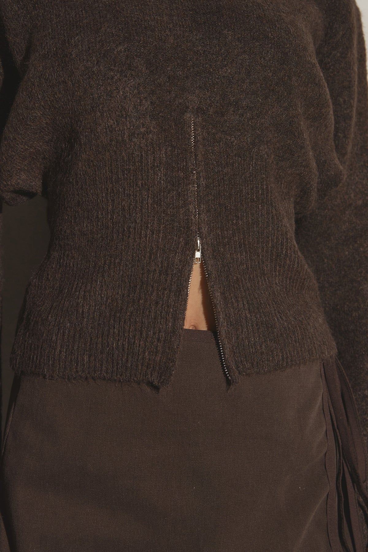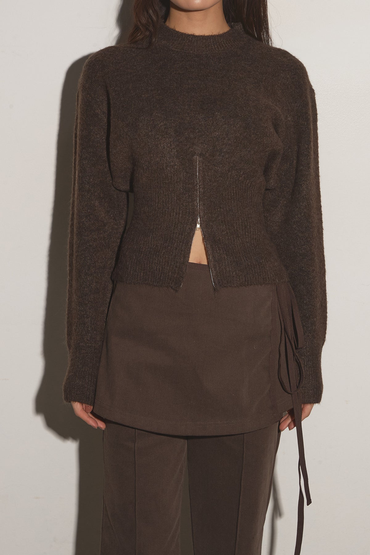 ご注文前に必ずページ下部「お届け期間」をご確認くださいませ。フロントのジップデザインがアクセントのニットトップス。ジップの開閉でスリット感や肌見せのバランスを調整でき、スタイリングに抜け感をプラスします。すっきりとしたシルエットでレイヤードにも使いやすい一枚。
