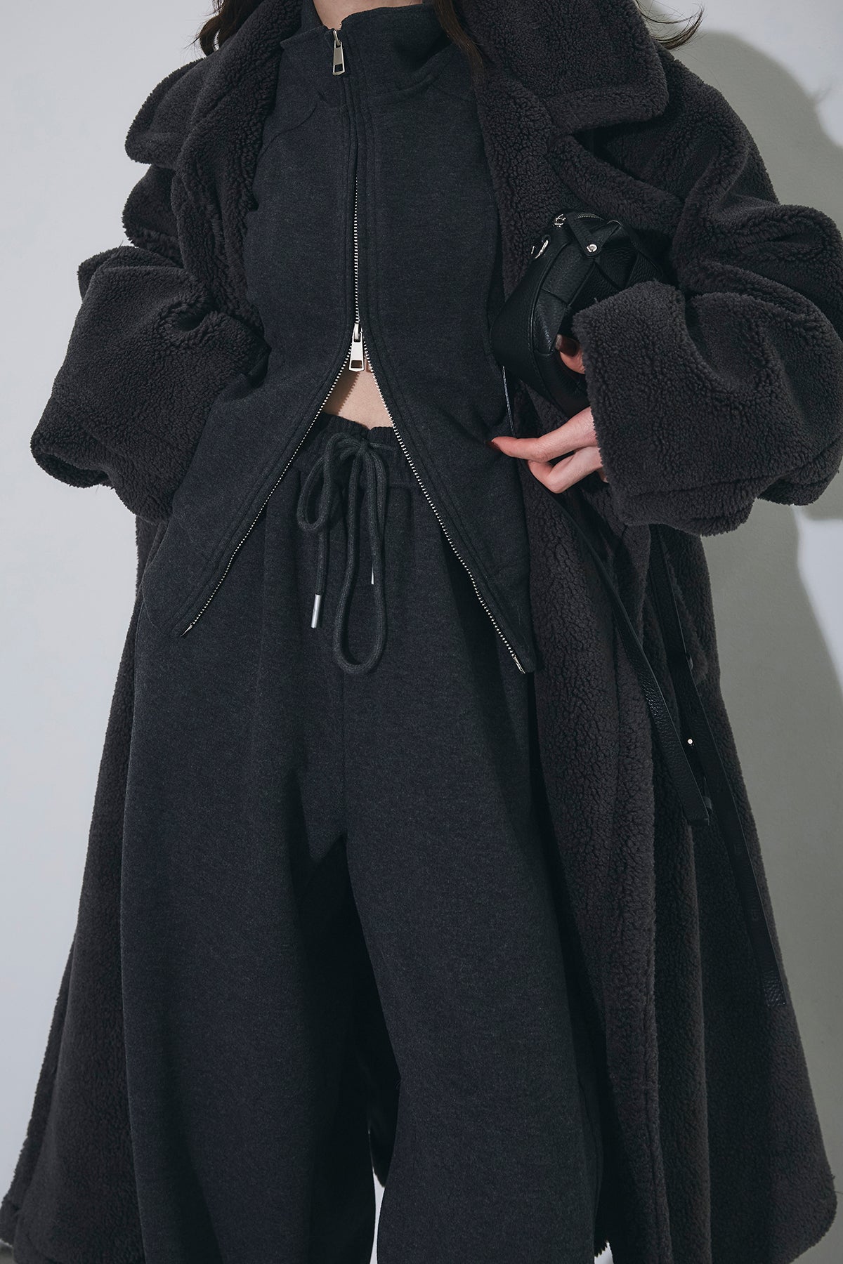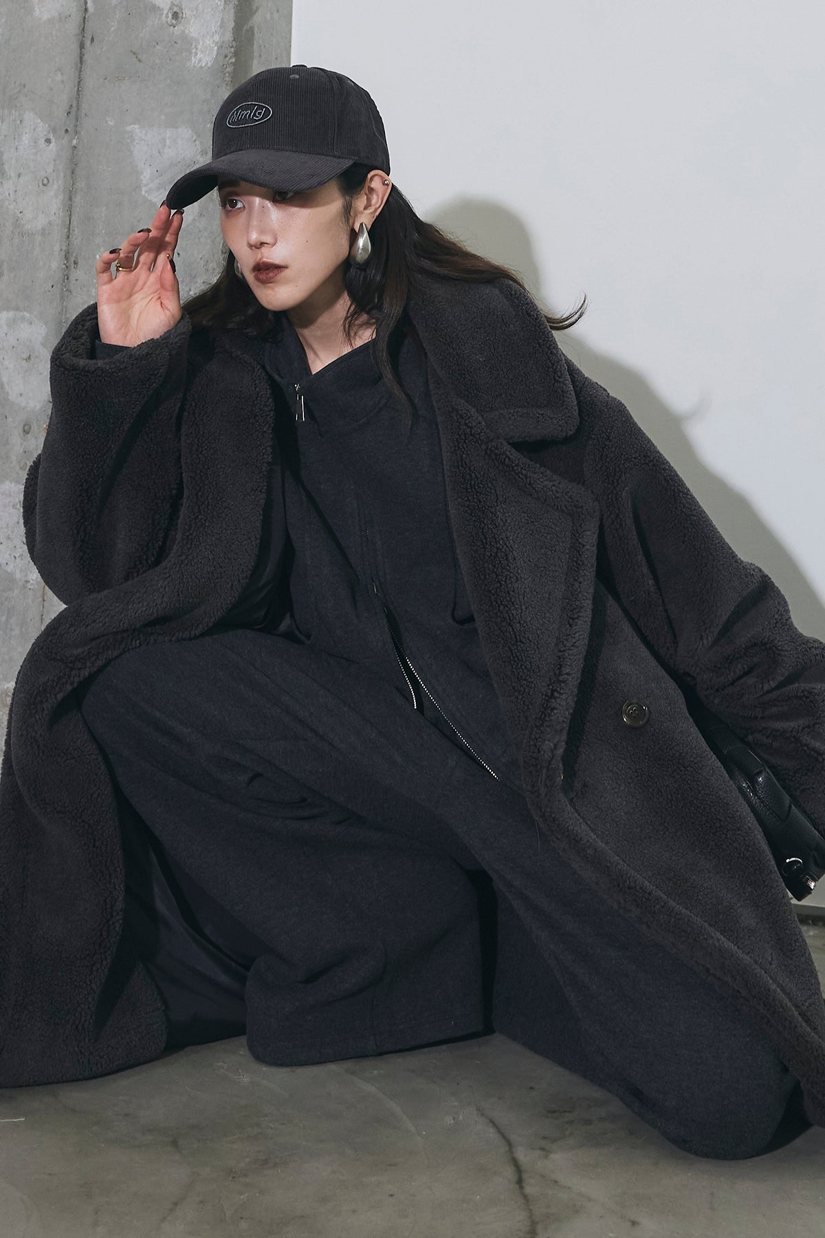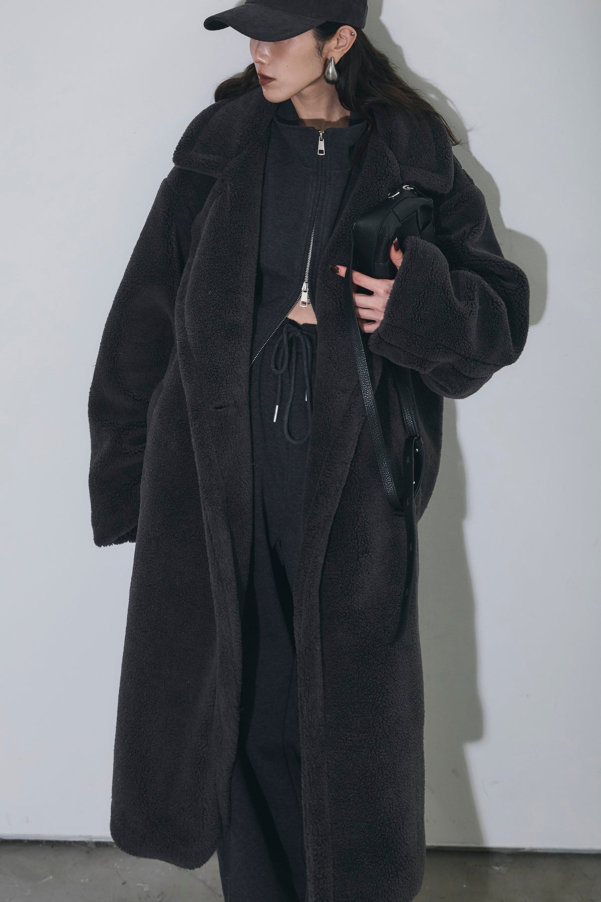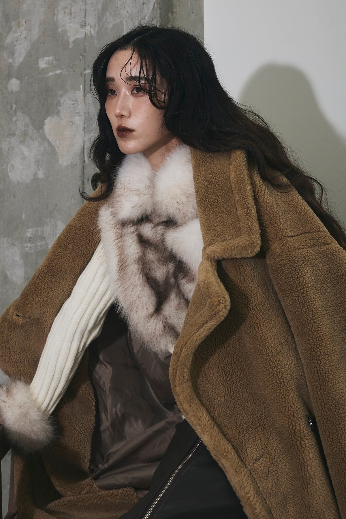 ご注文前に必ずページ下部「お届け期間」をご確認くださいませ。ふっくらとした質感が魅力のムートン調ファー素材を使用したオーバーサイズコート。 ゆったりとしたシルエットながらも、ドロップショルダーと長めの着丈で抜け感を演出。 大きめのラペルとやわらかな毛足が、冬のスタイリングにラグジュアリーな印象をプラスします。 軽やかな着心地でありながら、しっかりと防寒性も備えた一枚。 カジュアルにもモードにも映える万能アウターです。